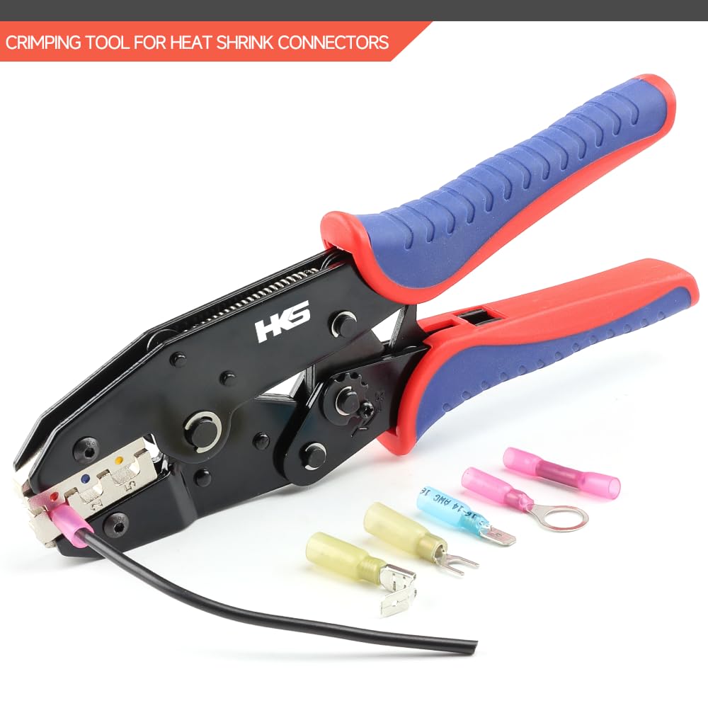 Professional Crimper - This crimper features an efficient ratchet mechanism and finish-machined crimp die for a solid crimp. This crimping tool fits perfectly with heat shrink connectors