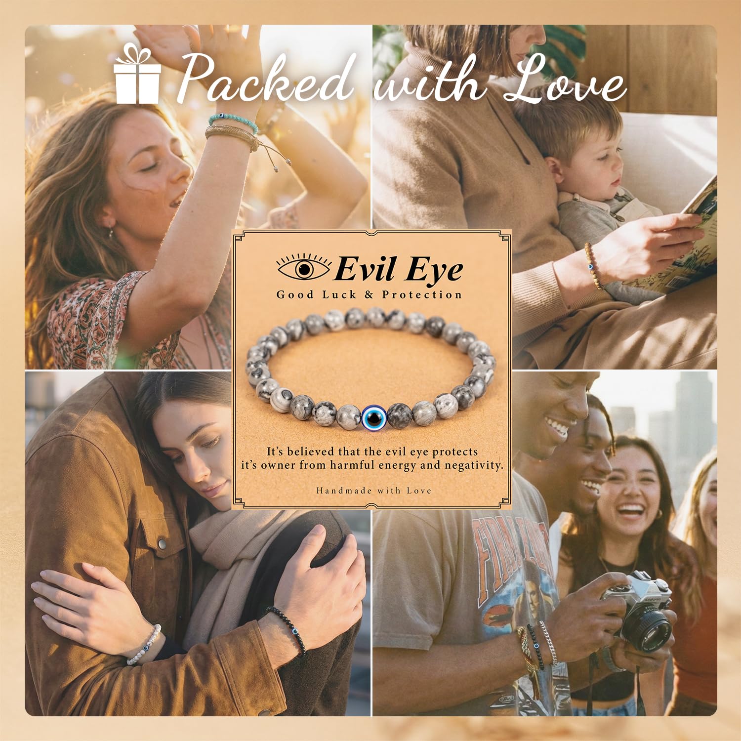Eye-Catching Details: The intricate evil eye charm is the focal point, complemented by sleek beads or chains for a chic look.