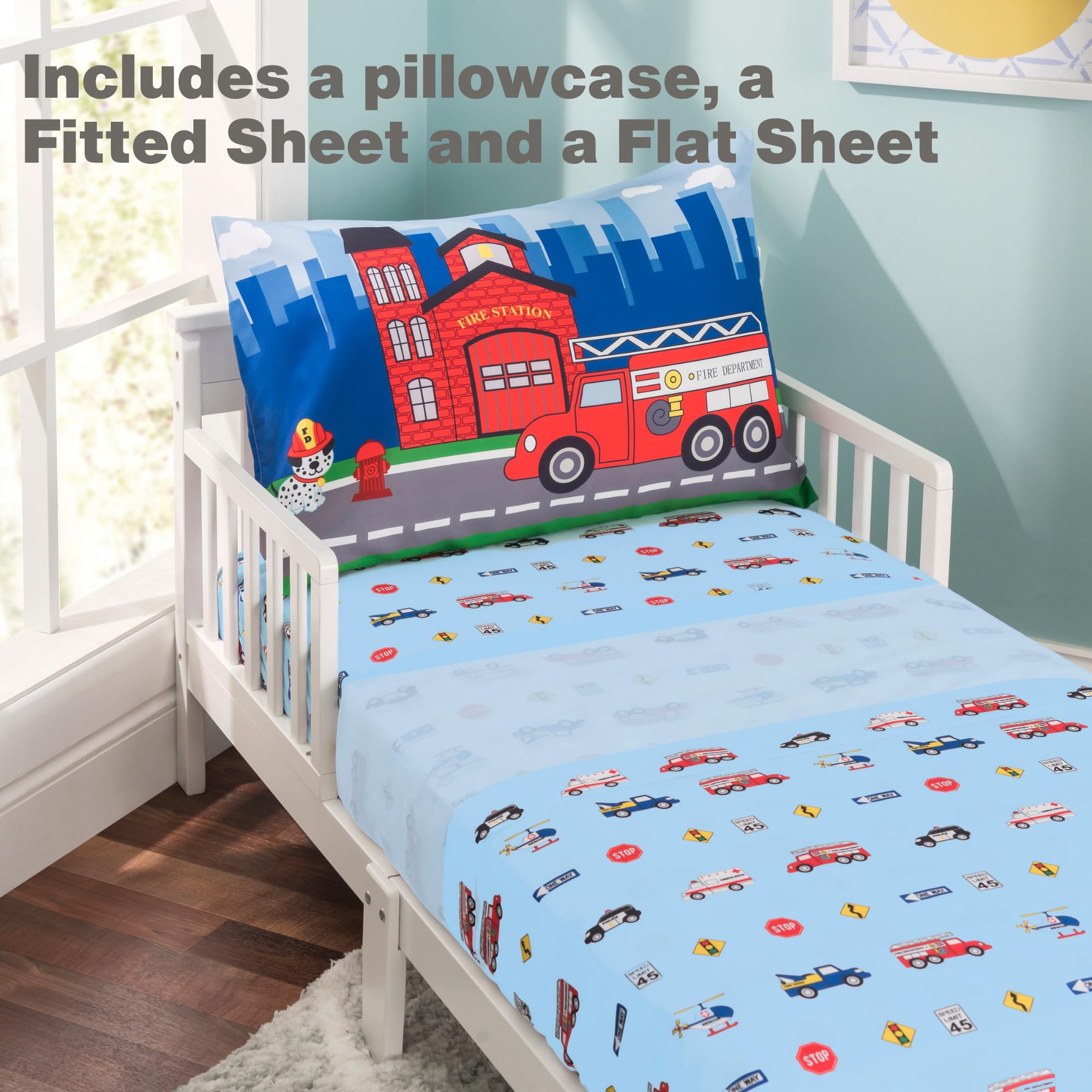 PERFECT FIT – This set includes a flat sheet (60” by 45”), a fitted sheet (52" by 28") and a pillowcase (30" by 20"). The fitted sheet is made to fit a standard size (52” by 28”) toddler mattress or crib with an 8” pocket. We have tested it on a ton of crib/toddler mattresses, so you don’t have too.