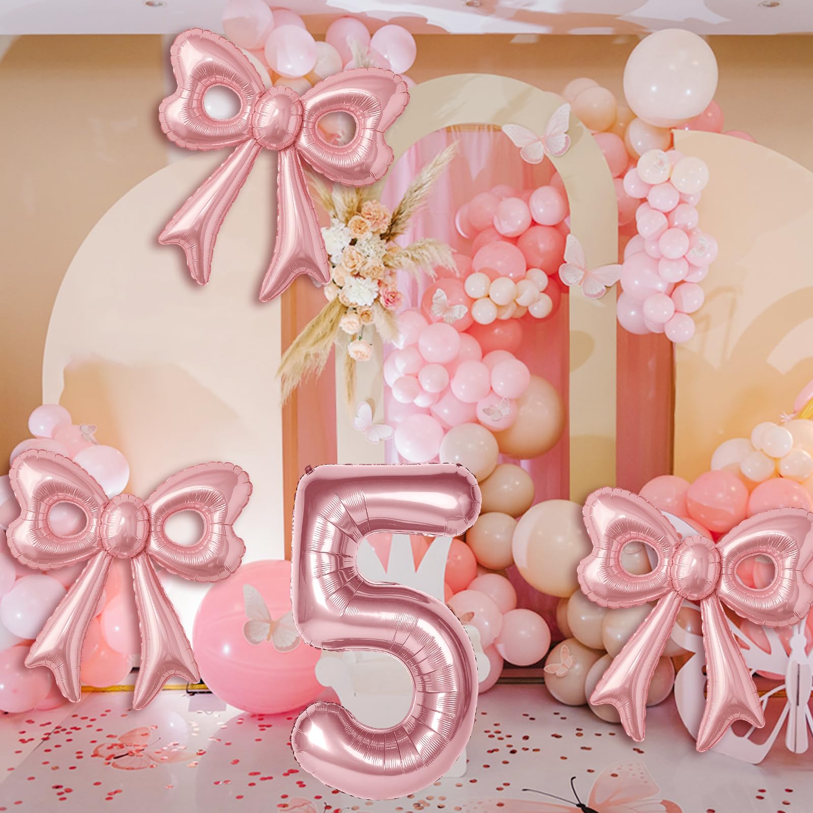 Applicable Occasions: BSRESIN pink number birthday balloon and bow balloon suitable for birthday party, girl's 5th birthday party, pink theme party, princess birthday party, doll theme birthday party, mouse birthday party, photo booth props etc, any place will not be inferior. You can put these beautiful bow balloons with other latex balloons to add color to the party. Your guest and kids will love them and take photo with them.