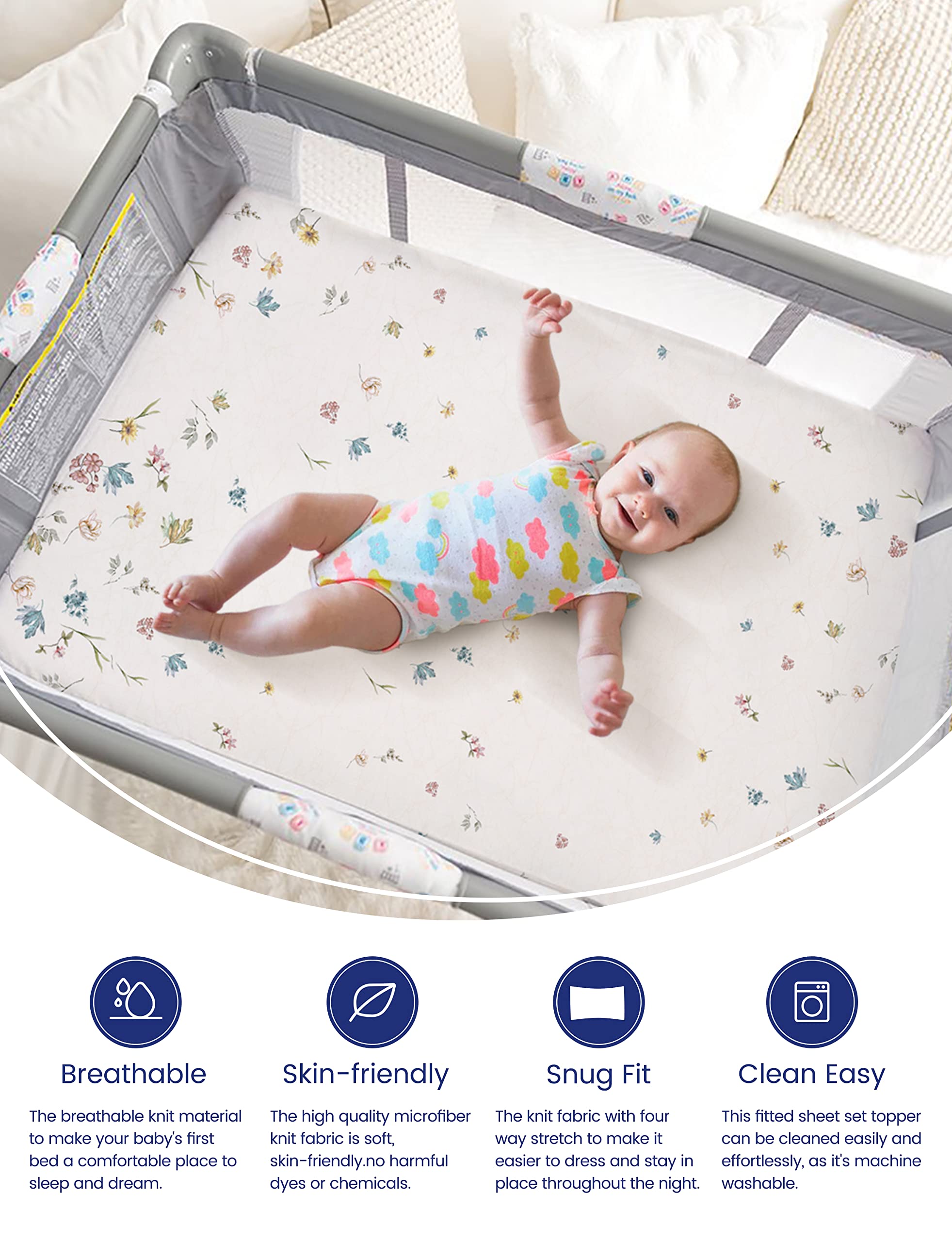 SOFT. SUPPLE. SILKY: TotCare fabric is weaved out of the finest fibers to ensure superb flexibility and smoothness.Make your baby's crib the softest sleep space. The TotAha portable crib sheets set will guarantee relaxation at night.