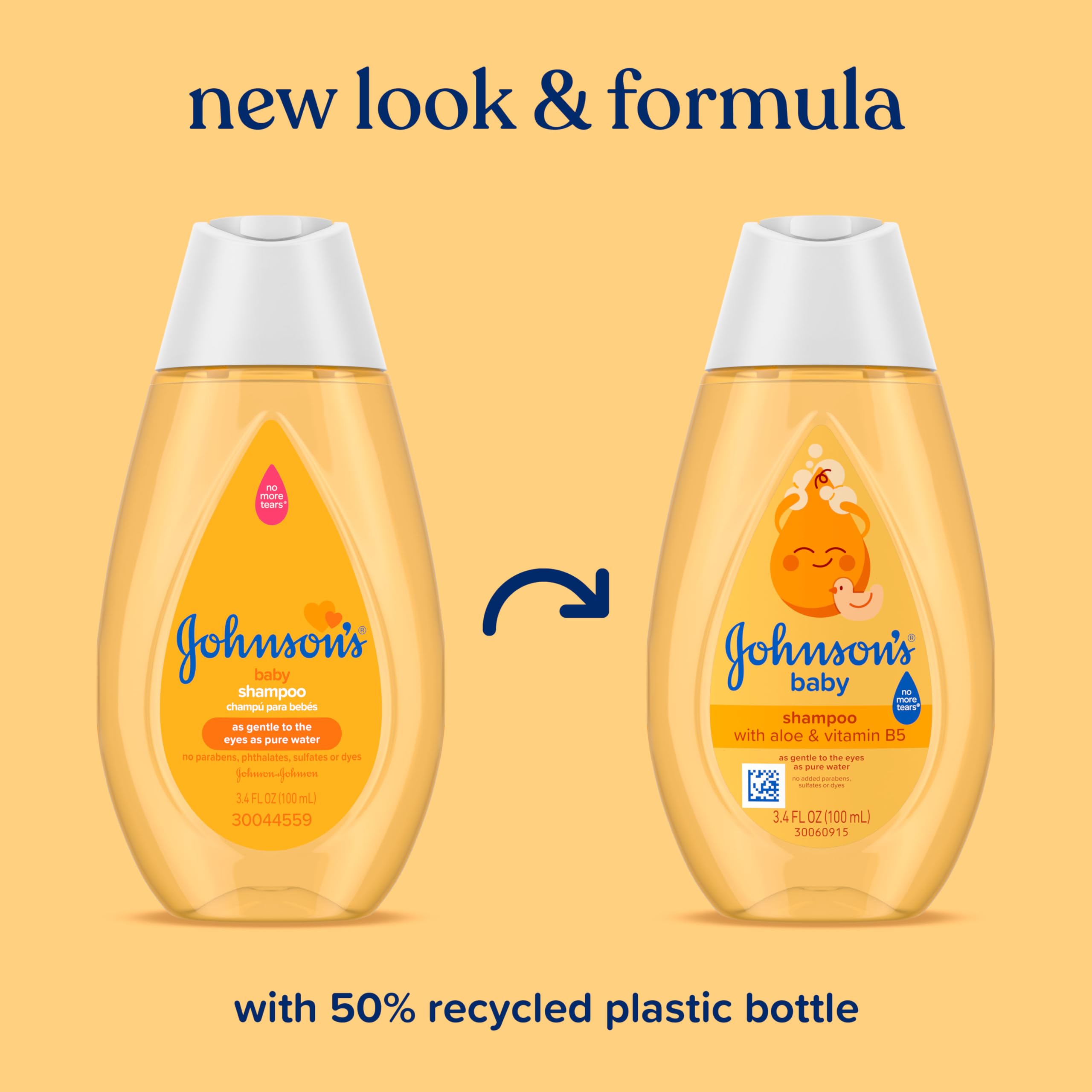 Gently cleanse your baby’s hair with Johnson’s Baby Shampoo—a mild, tear-free shampoo specially designed for fine baby hair and delicate scalps. Clinically proven safe for newborns and gentle enough for the whole family, this shampoo washes away dirt and buildup while leaving baby’s hair soft, shiny, and clean. Formulated with aloe vera and vitamin B5, this hypoallergenic shampoo helps maintain natural moisture of hair & scalp. The No More Tears formula is as gentle to the eyes as pure water. Johnson’s Baby Shampoo can be used as part of your daily care routine to gently cleanse baby’s delicate hair and scalp. Part of the perfect 3-step bath routine: Shampoo with Johnson's Baby Shampoo Wash with Johnson’s Baby Head-To-Toe Wash & Shampoo Moisturize with Johnson’s Baby Lotion Packaged in a bottle made with 50% recycled plastic. How to Use: Wet baby’s fine hair with warm water. Apply shampoo, gently lather, and rinse thoroughly. Our Formula: Formula, now with Aloe & Vitamin B5: Formula with Aloe Vera & Vitamin B5 leaves hair and scalp feeling nourished and healthy Hypoallergenic & pH balanced. No added parabens, sulfates, & dyes. Tested by Pediatricians; Made with unique gentle baby scents Brand Story: Johnson’s Baby cares for what is precious: your baby’s precious skin and hair, and precious moments of bonding. For over 125 years, we’ve been committed to crafting gentle, science-backed baby care products that support happy, healthy bonding moments. World’s #1 Baby & Child Care Brand* *Source: Euromonitor International Limited; Beauty and Personal Care 2025 ed. As per Baby and Child-Specific Products Category; all retail channels; value sales at RSP; 2024 data.