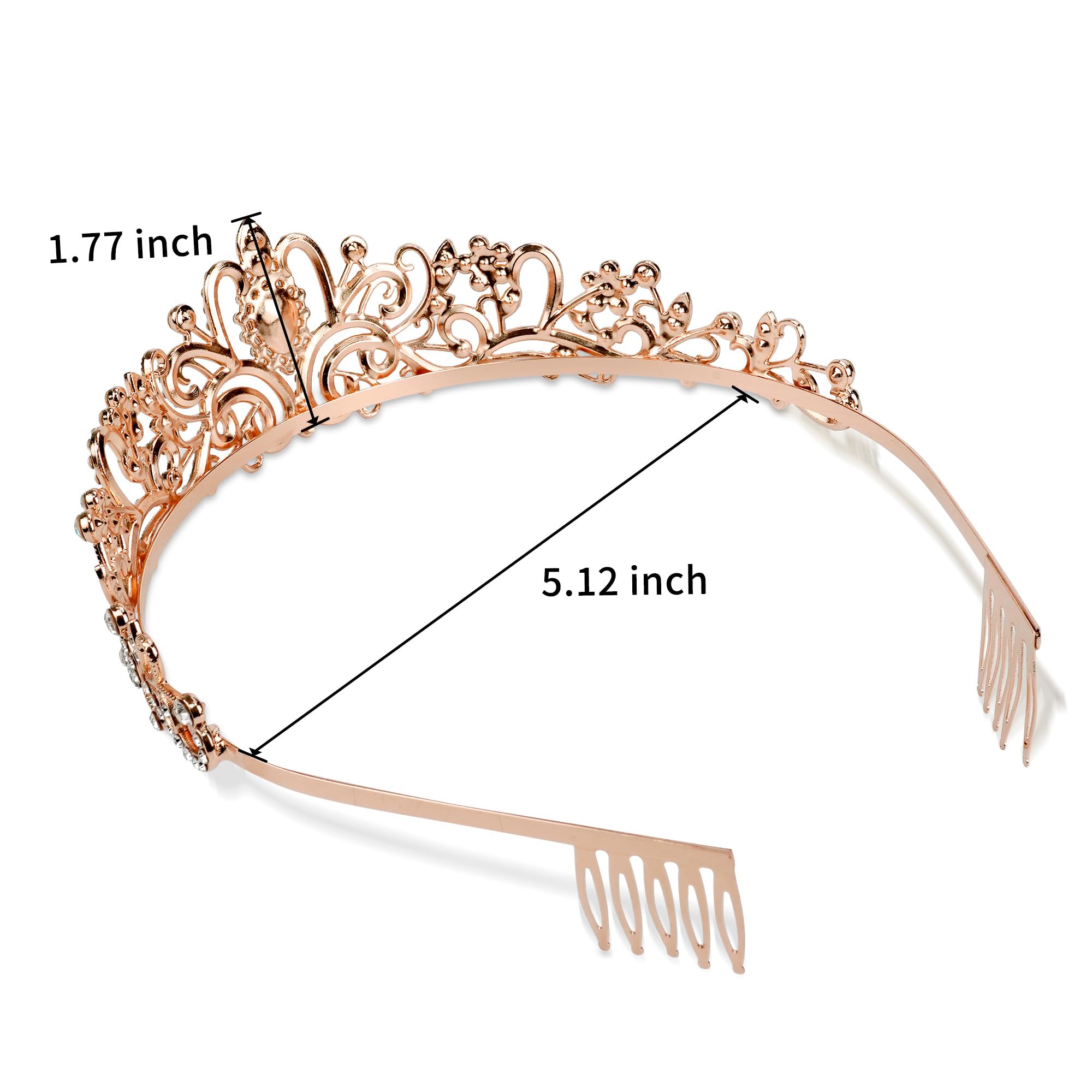 One Size Fits Most: Our crown is rose gold and measures approximately 1.77 inches (4.5cm) tall and 5.12 inches (13cm) in diameter. Specially designed to fit women's head size, suitable for adults, perfectly fit your charming hairstyle and face shape.
