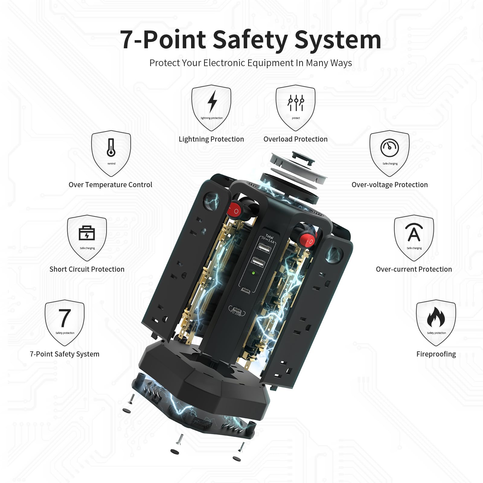 All-Round Safety Protection: To protect you and your valuable electronic devices, this extension cord with multiple outlets has advanced protection technology and, CE safety certification. The 1800J surge protector is made of 1382°F fire-resistant ABS+PC material.