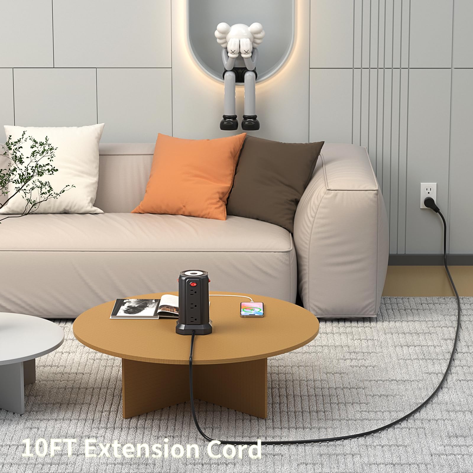 Smart Power Strip with Night Light: PASSUS power strip tower with night light mode features three brightness levels. The soft and comfortable light is just enough to light the surrounding area, enhancing safety at night. You can manually turn on/off the night light to meet your needs.