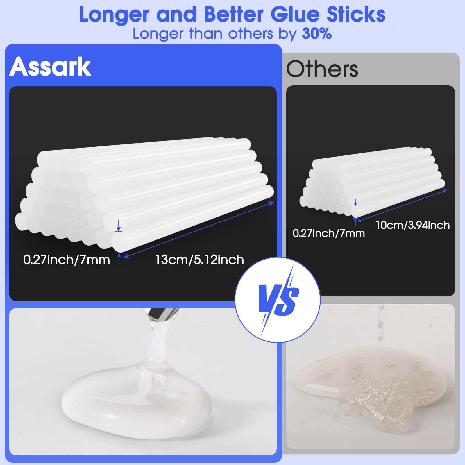 【Better Glue Sticks and Fast Heating】:This hot glue gun comes with 30 (130*7mm) high quality clear PVC hot glue sticks, which makes it last longer and better than (100*7mm) hot glue sticks. It takes 3 minutes to warm up, keeps the temperature constant automatically.