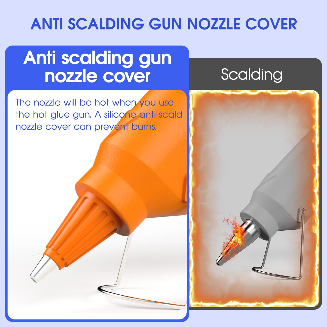 【Anti-drip and Heat Resistant】: Thermal Insulated Cap on hot glue gun is covered by heat-resistant rubber to prevent burns. Anti-drip nozzle releases glue smoothly with no drips or glops and is easy to control and place a small amount of glue.
