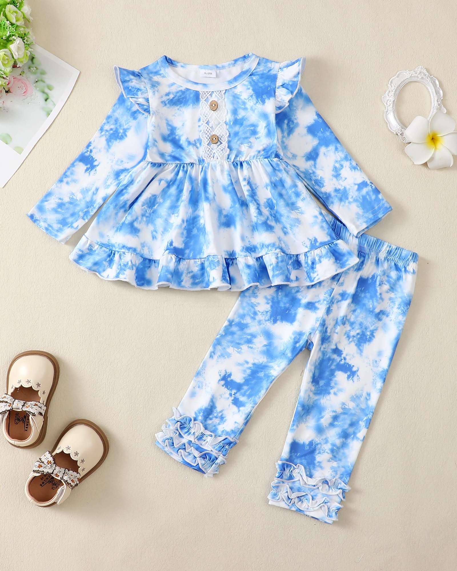 Design: Flower/Leopard/stripe/Solid long sleeve shirt, ruffle hem styles, match with ruffle pant, simple yet cute.