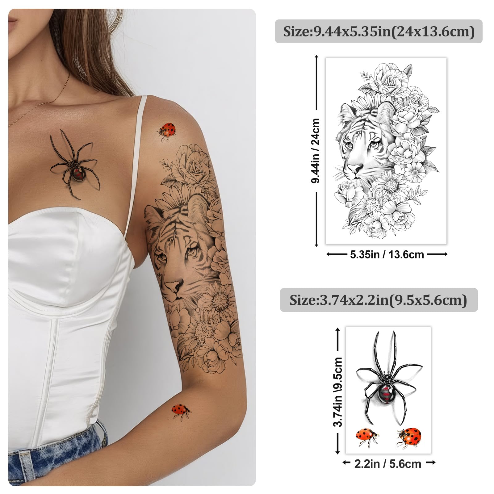 ✔[LARGE SIZE & LARGE QUANTITY] Large size flowers collection tattoo stickers can cover your body parts larger, size is 9.45 * 5.35 inch (24 * 13.6cm) 14 sheets, 3.9 * 2.3 inch (9.8 * 5.8cm) 35 sheets .You can share it with your family and friends.