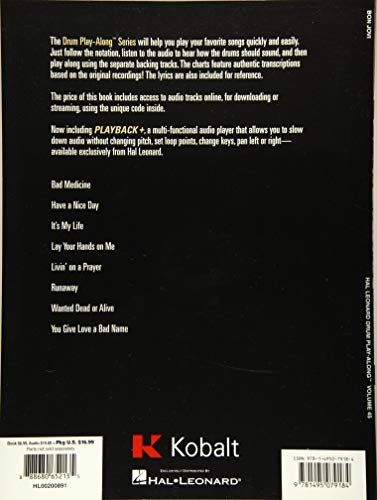 (Drum Play-Along). Play your favorite songs quickly and easily with the Drum Play-Along Series. Just follow the drum notation, listen to the audio to hear how the drums should sound, then play along using the separate backing tracks. The book includes access to audio tracks online, for download or streaming, including Playback+, a multi-functional audio player that allows you to slow down audio without changing pitch, set loop points, change keys, and pan left or right. Songs include: Bad Medicine * Have a Nice Day * It's My Life * Lay Your Hands on Me * Livin' on a Prayer * Runaway * Wanted Dead or Alive * You Give Love a Bad Name.