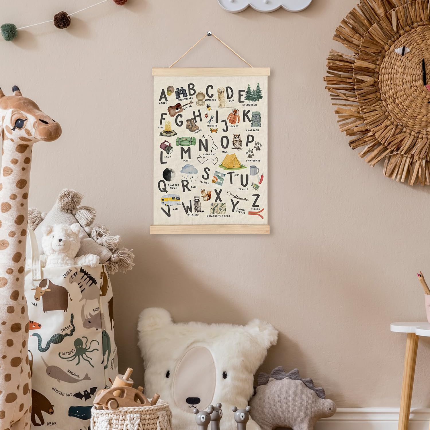 Versatile Decorative Accent: Whether used in nurseries, kidsβ rooms, living areas, bedrooms, kitchens, or offices, this hanging poster adds a personal touch that seamlessly fits various decor styles.