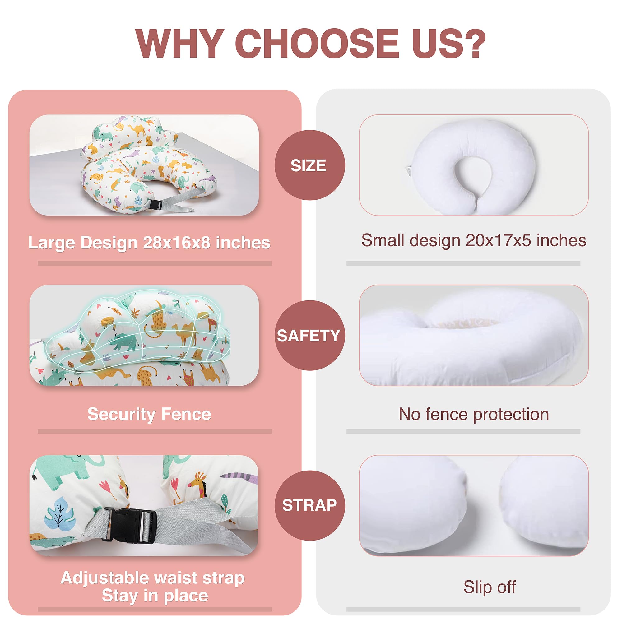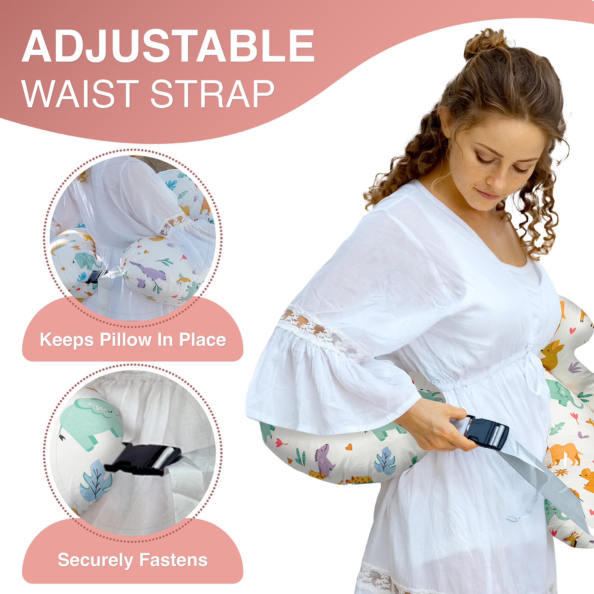 [Baby Safety is Our Priority] The innovative cloud design offers excellent security and support for mom, preventing your baby from rolling in or away while breastfeeding. Plus, the unique C-shaped base and the adjustable waist strap eliminates the gap between you and your baby. It securely fastens to your body and ensures that the pillow stays in place while providing a snug fit that promotes comfort during nursing sessions