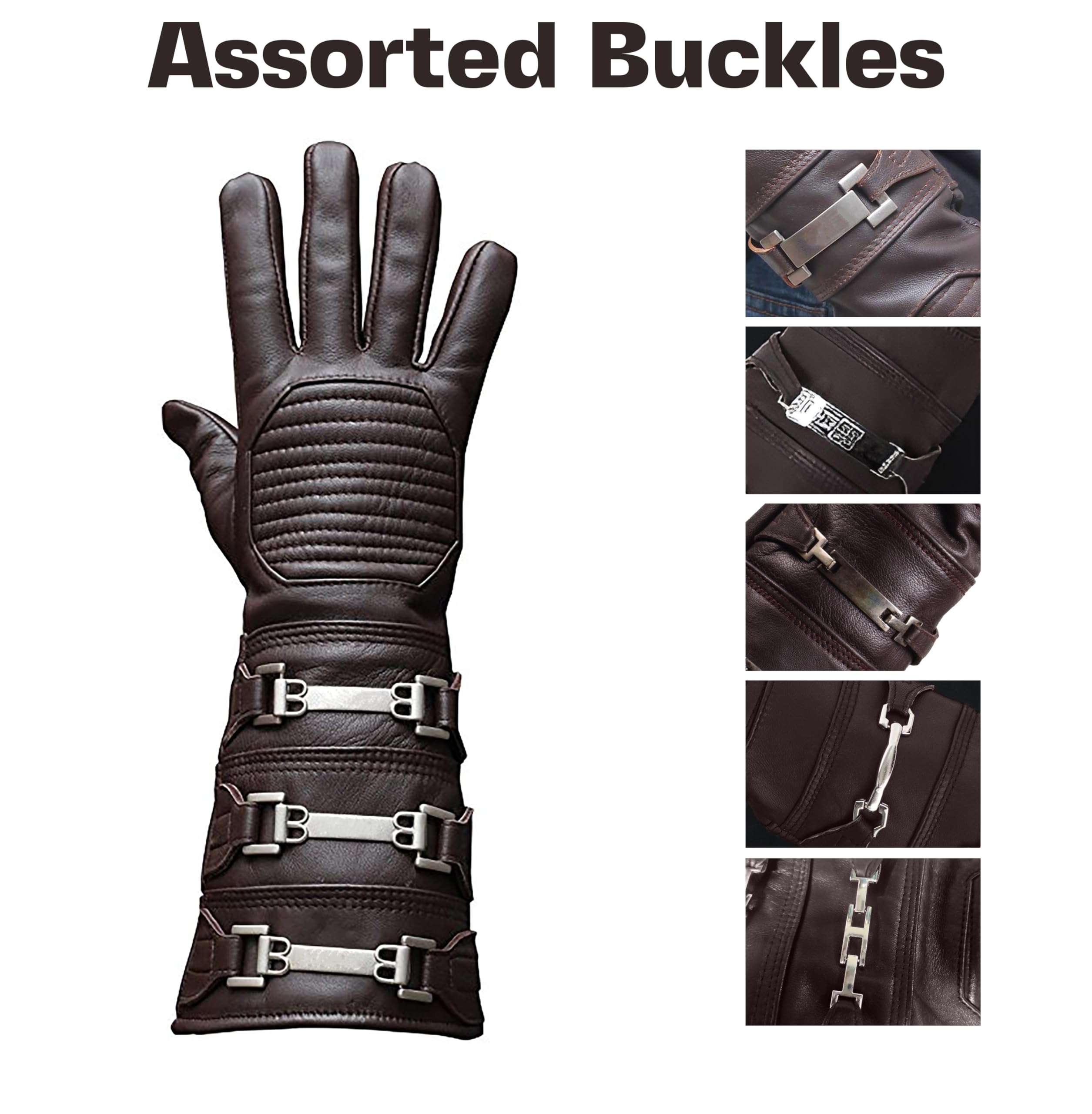 Accessories: These leather gauntlet come with Genuine Silver polished Buckles for a Luxurious look to your costume.