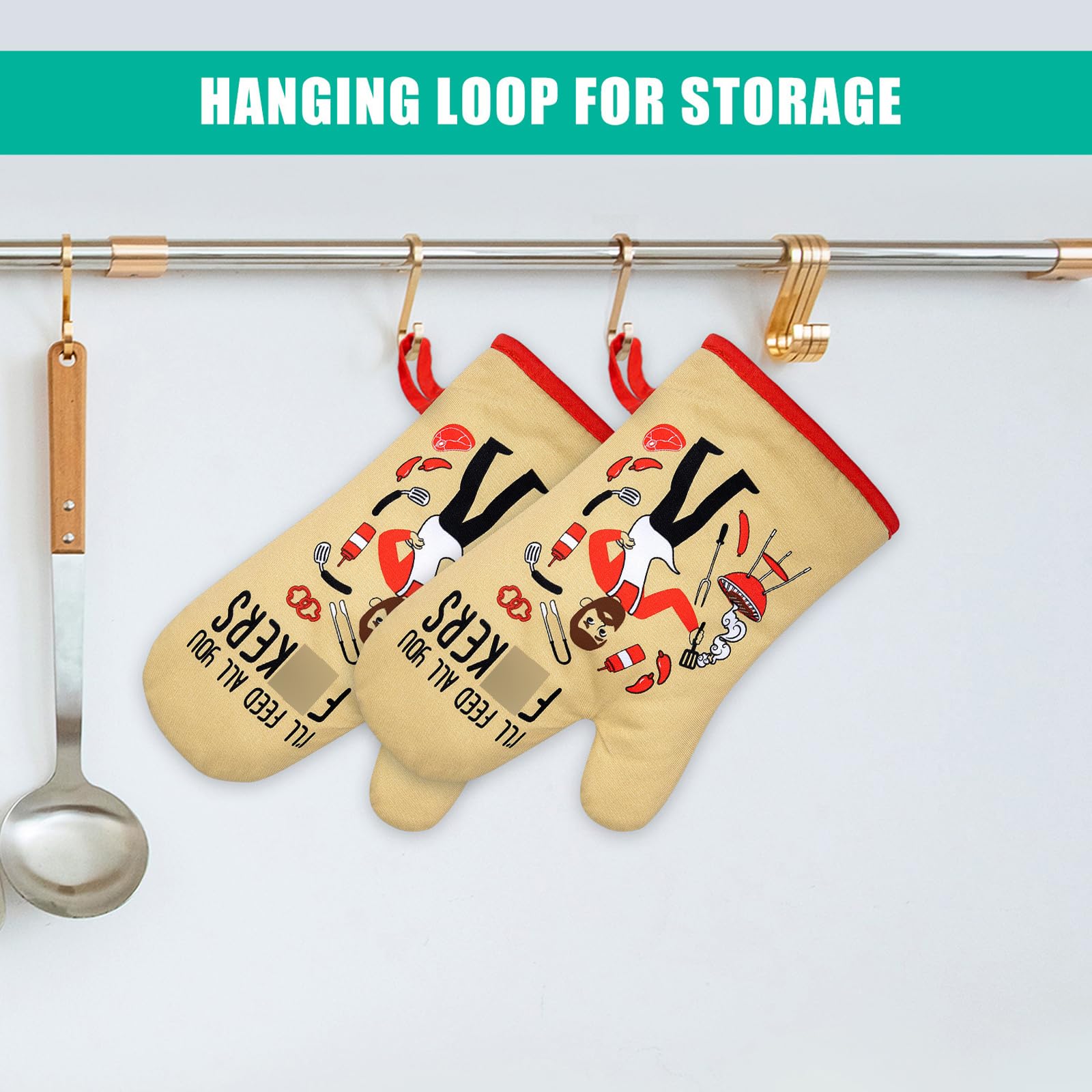 Functional & simple storage; Suitable for grilling, baking, cooking, serving, outdoor barbecue and more cooking tools; Sassy kitchen mitts set with convenient hanging loops