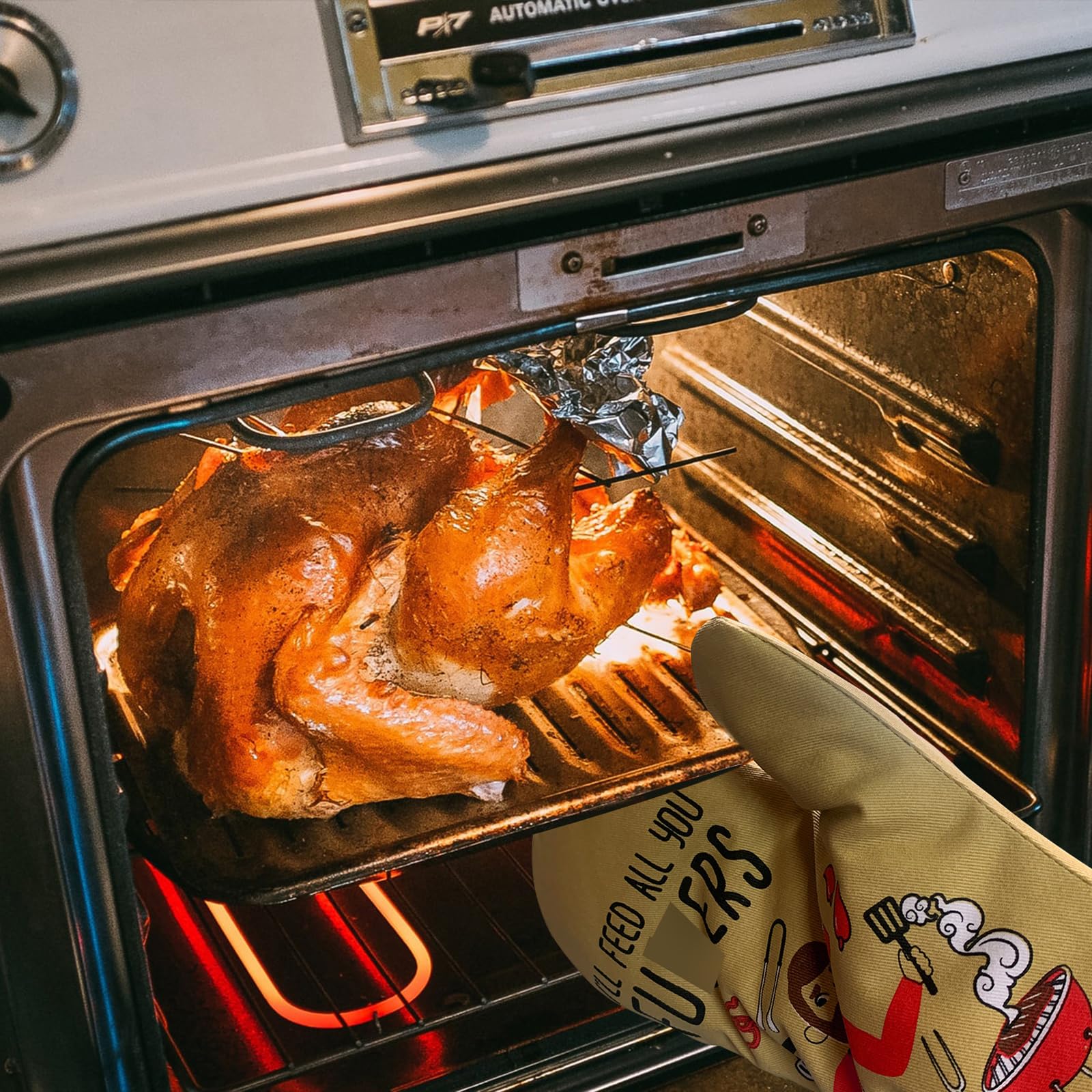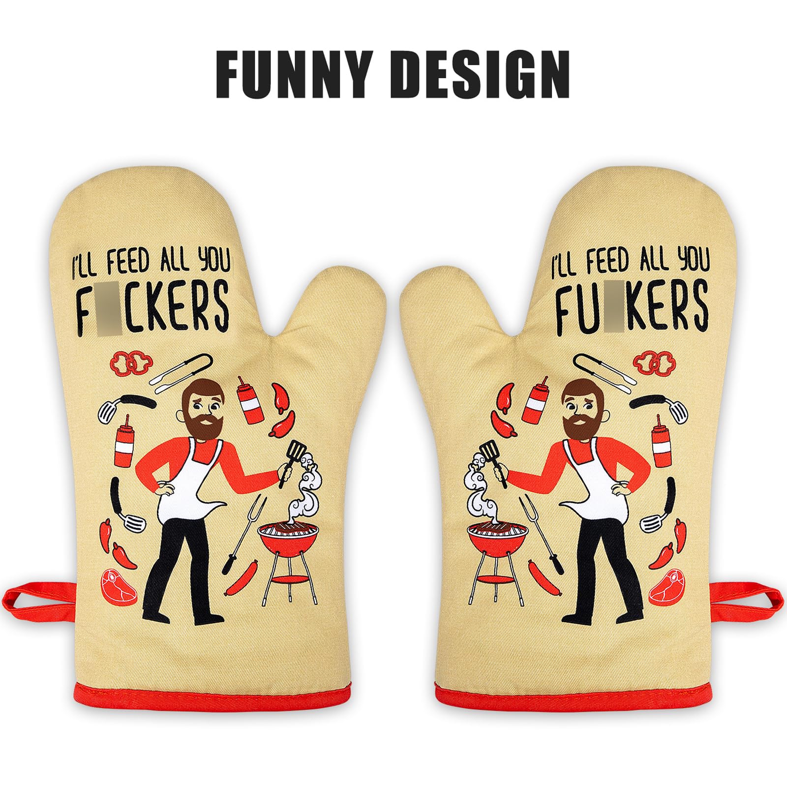 Funny oven mitts set of two, funny gifts for men; Our cool oven mitt set is a great cooking present for men when he's up for feeding a crowd; Unique kitchen gifts for dad, husband, brother, grandpa, father in law, son, boyfriend, fiance, men, chef, male friends, BBQ lovers, restaurateur, cooking guys, grill dad, host or any home cook with a sense of humor