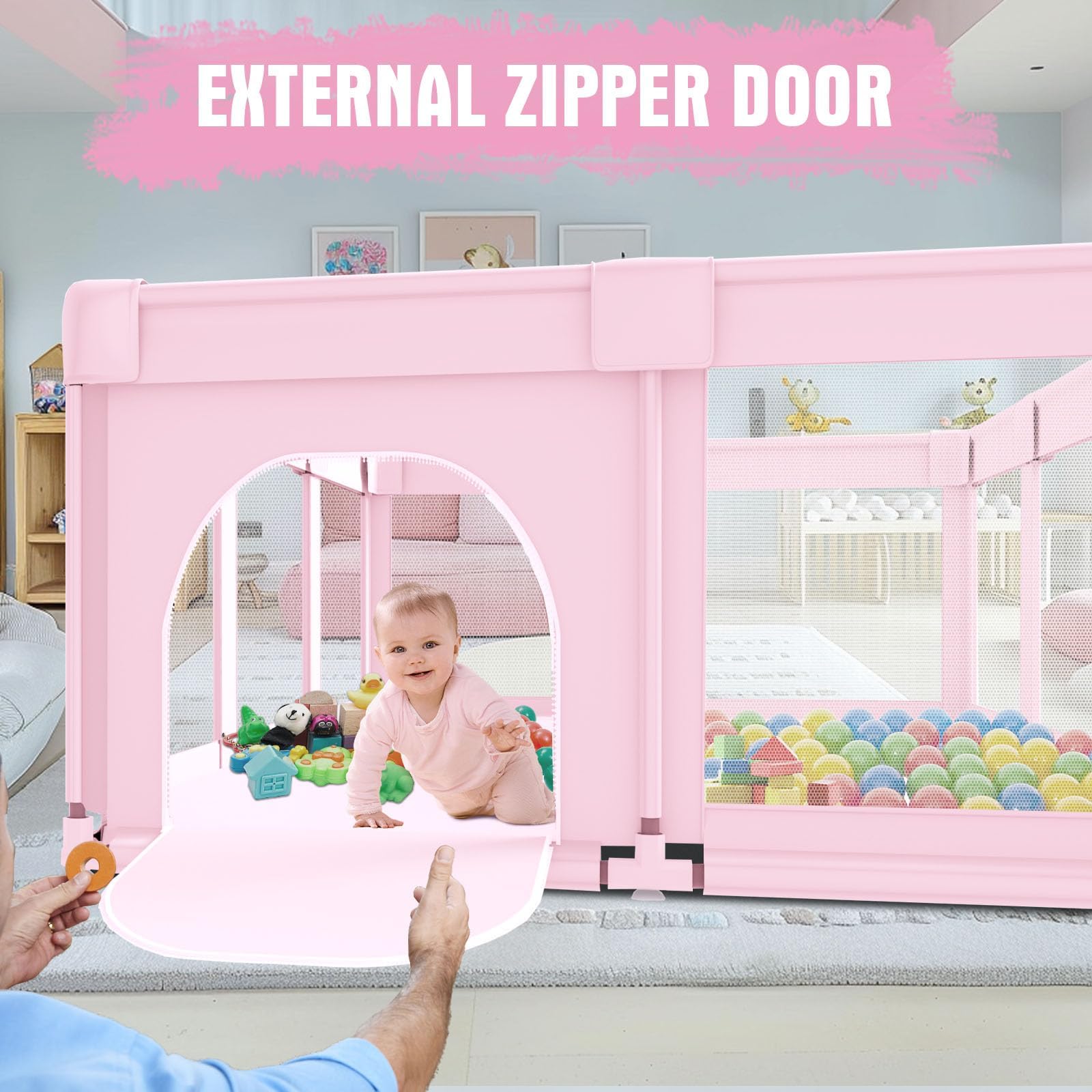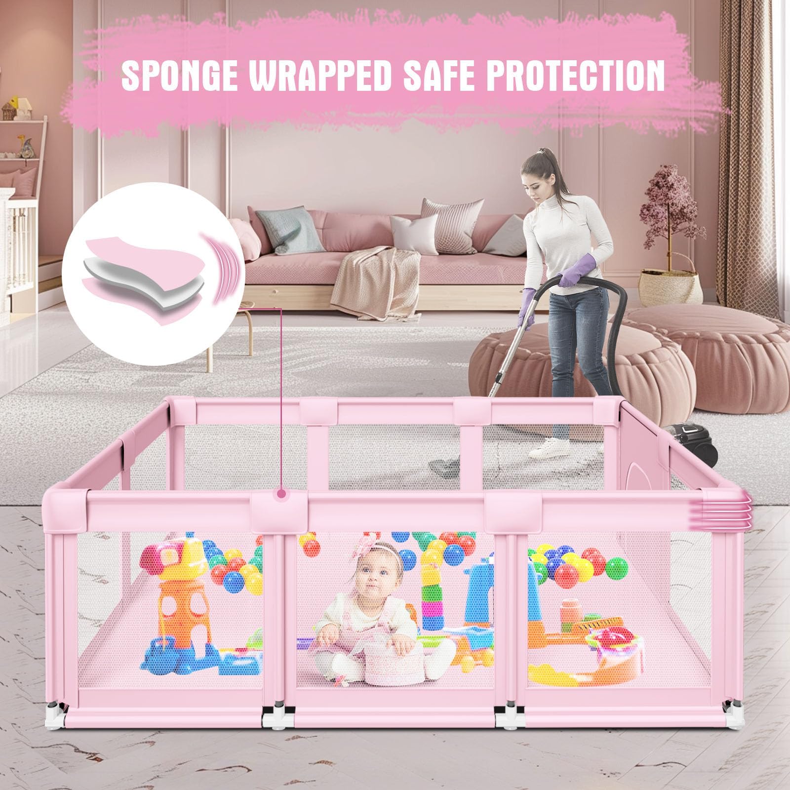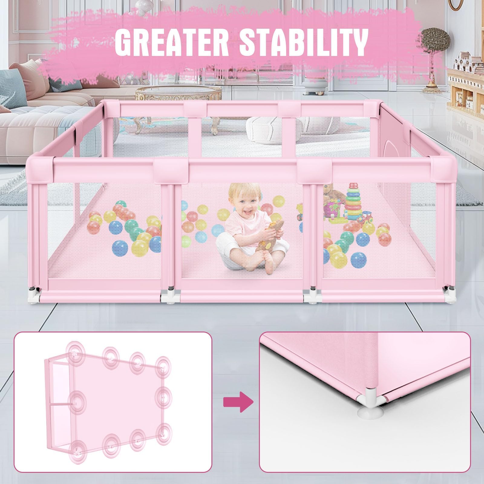 ใSAFE PET-FREEใ:Our toddler playpen will be a pet-free safe place for any baby and pet family, 10 non-slip suction cups are designed for extra stability, and can sticks securely to the floor, so your baby won't tip over the pen and cause danger.