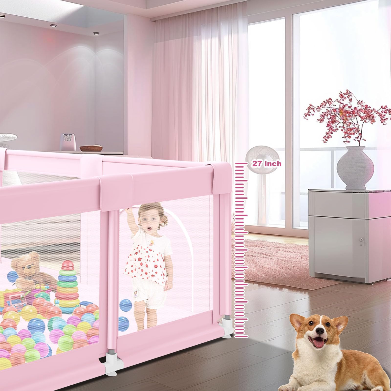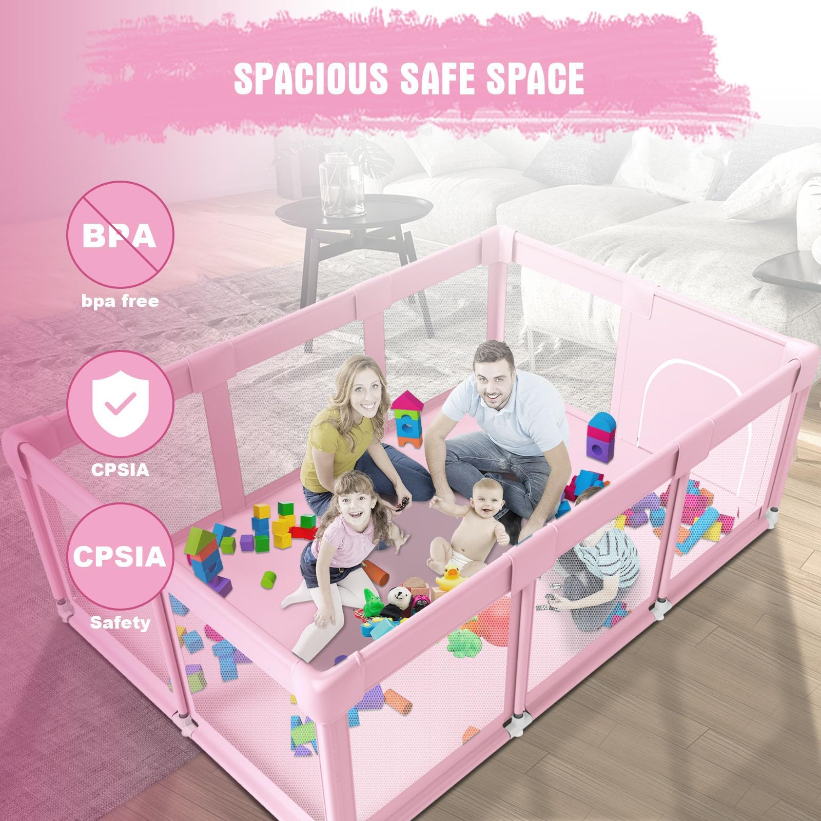 ใENOUGH SPACE PLAY AREAใ:Our 74x50x27 inch play pen can accommodate 4 babies and an adult to play at the same time, the small play yard is easy to move and can be placed anywhere. Scientific height, Scientifically tall enough for toddlers 6 months to 6 years to help them stand and walk. (Note: Mat not included)