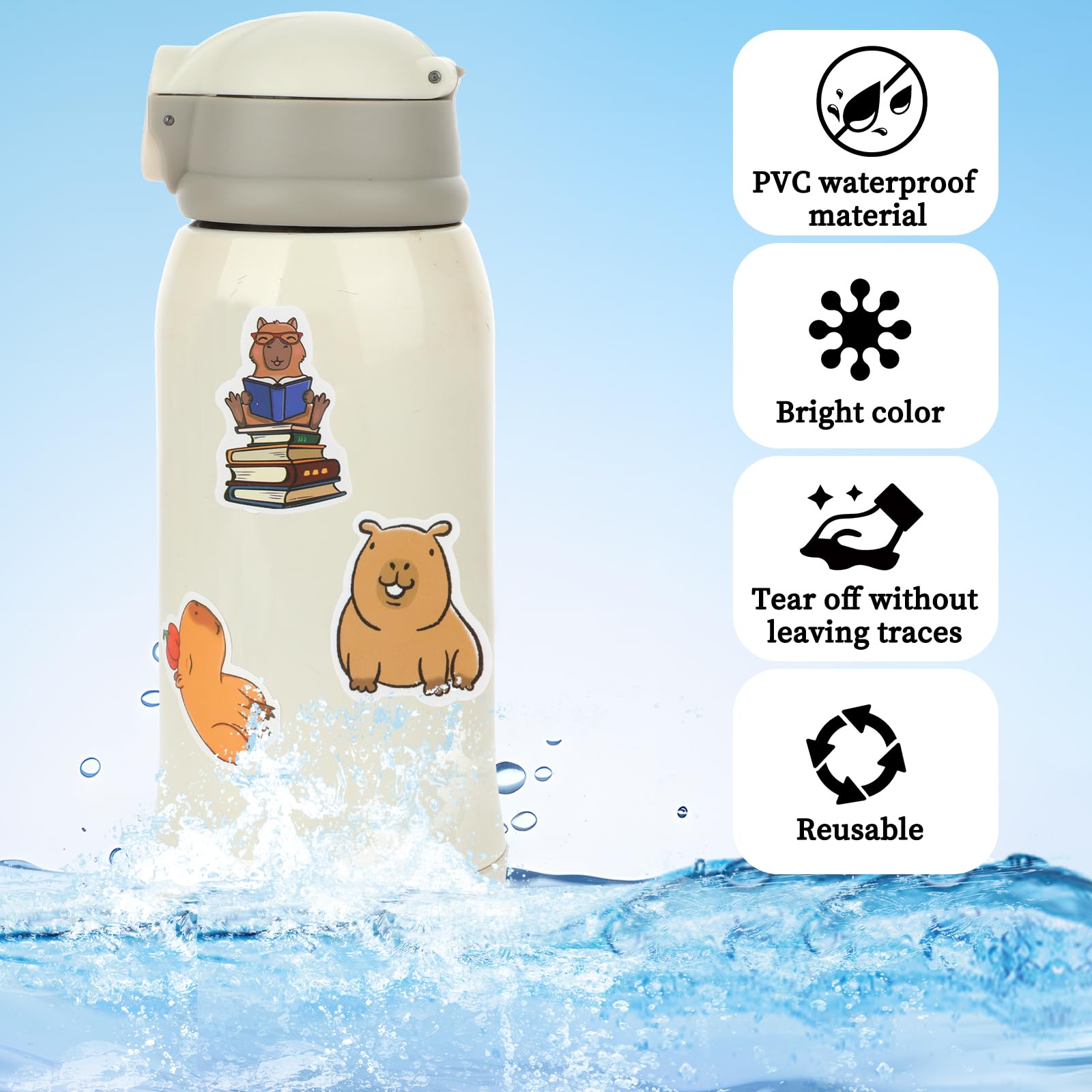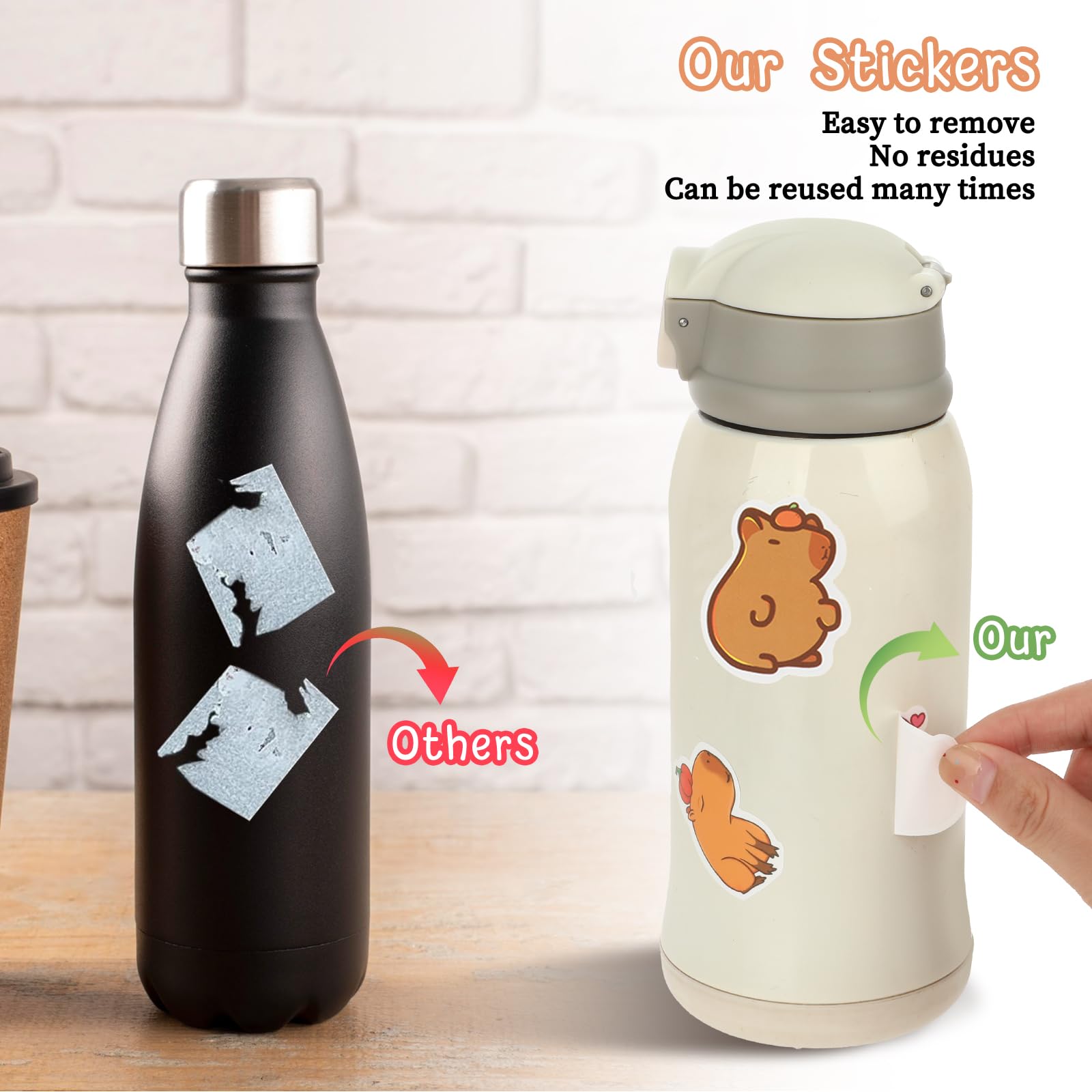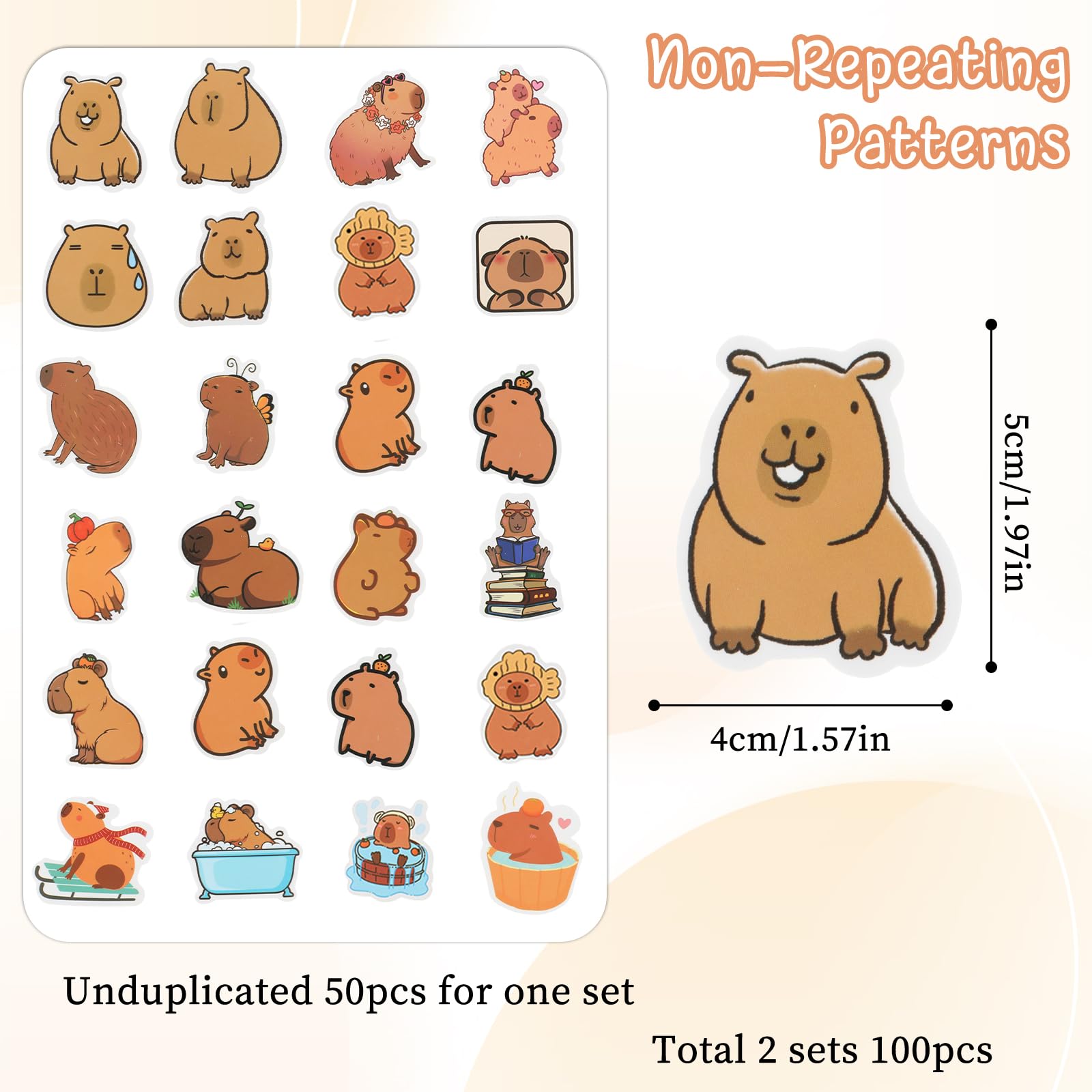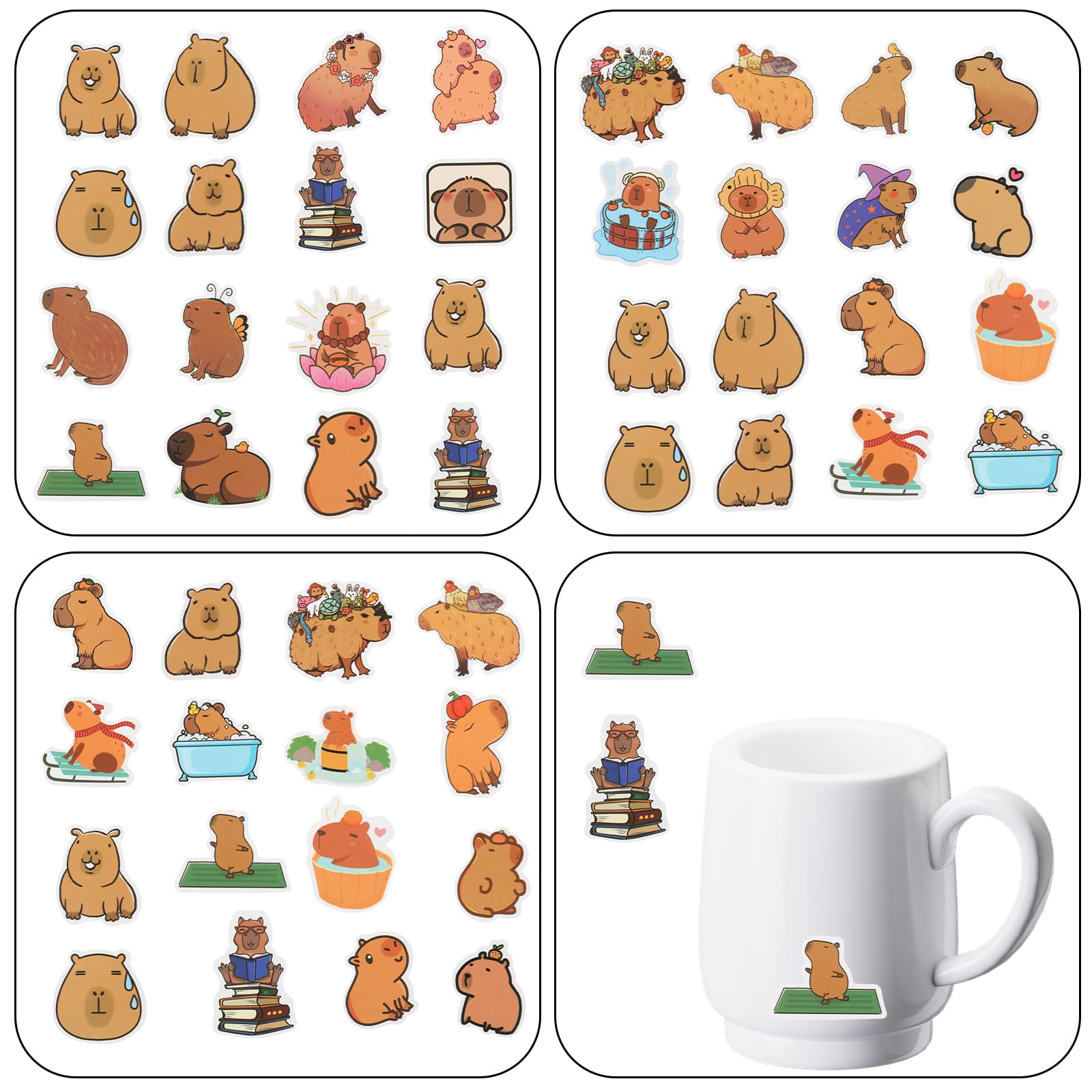 【Package Included】Capybara stickers have 50 stickers per pack, Cute Brown Stickers are about 1.57-1.97 inches in size, made of PVC material, safe and waterproof, tear off without leaving marks, and can bring a lot of fun to your life.