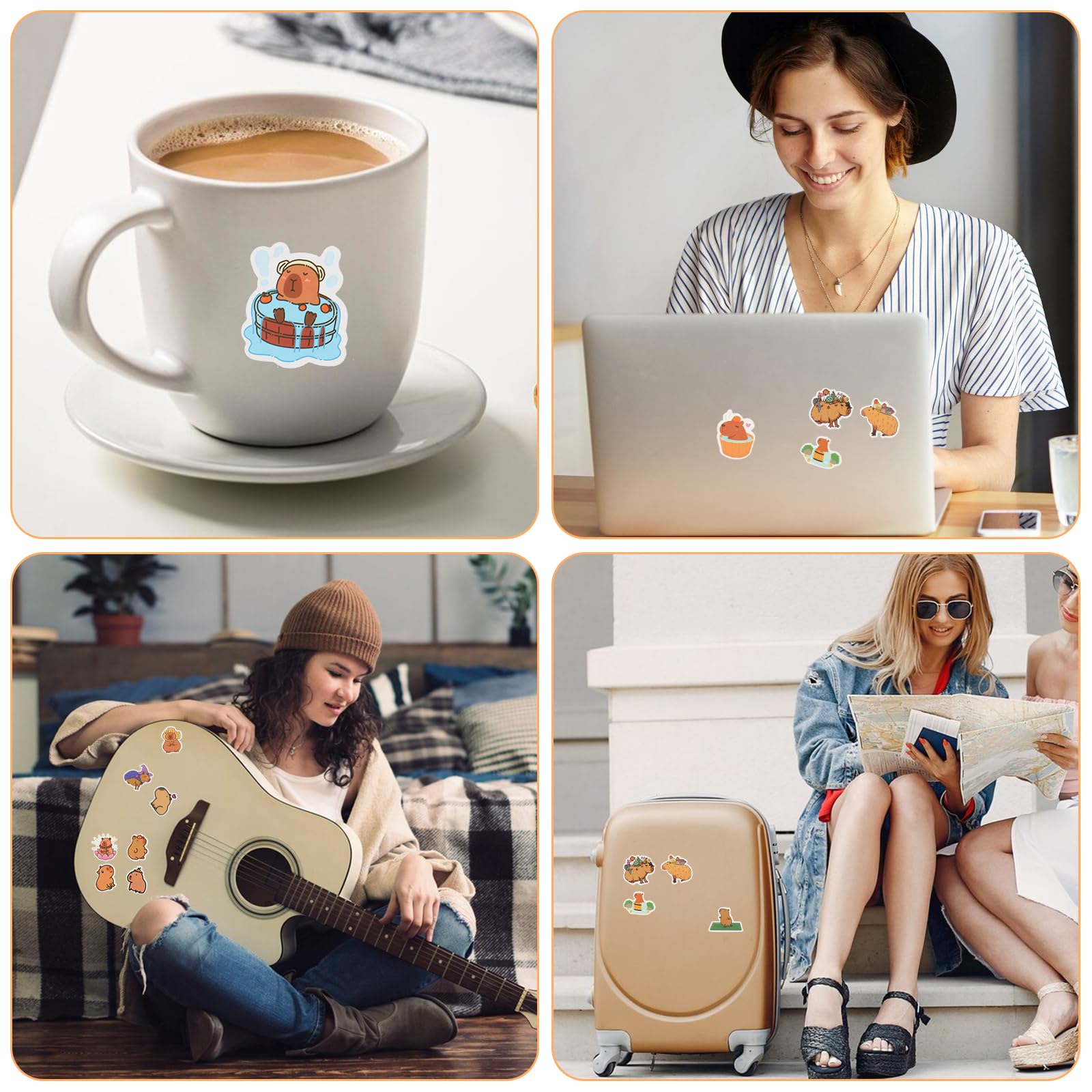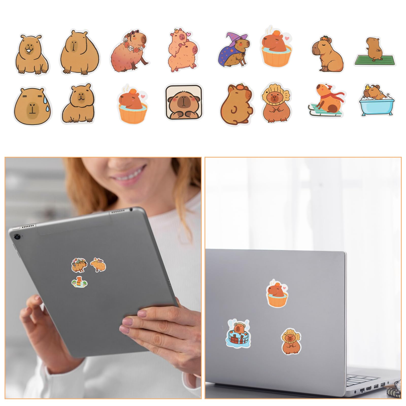 【High-Quality Materials】Capybara birthday decorations stickers are made of waterproof PVC synthetic paper stickers, with sun protection, strong and strong adhesive, our decorative stickers can be adhered to most clean surfaces, are easy to remove, and will not leave any residue.