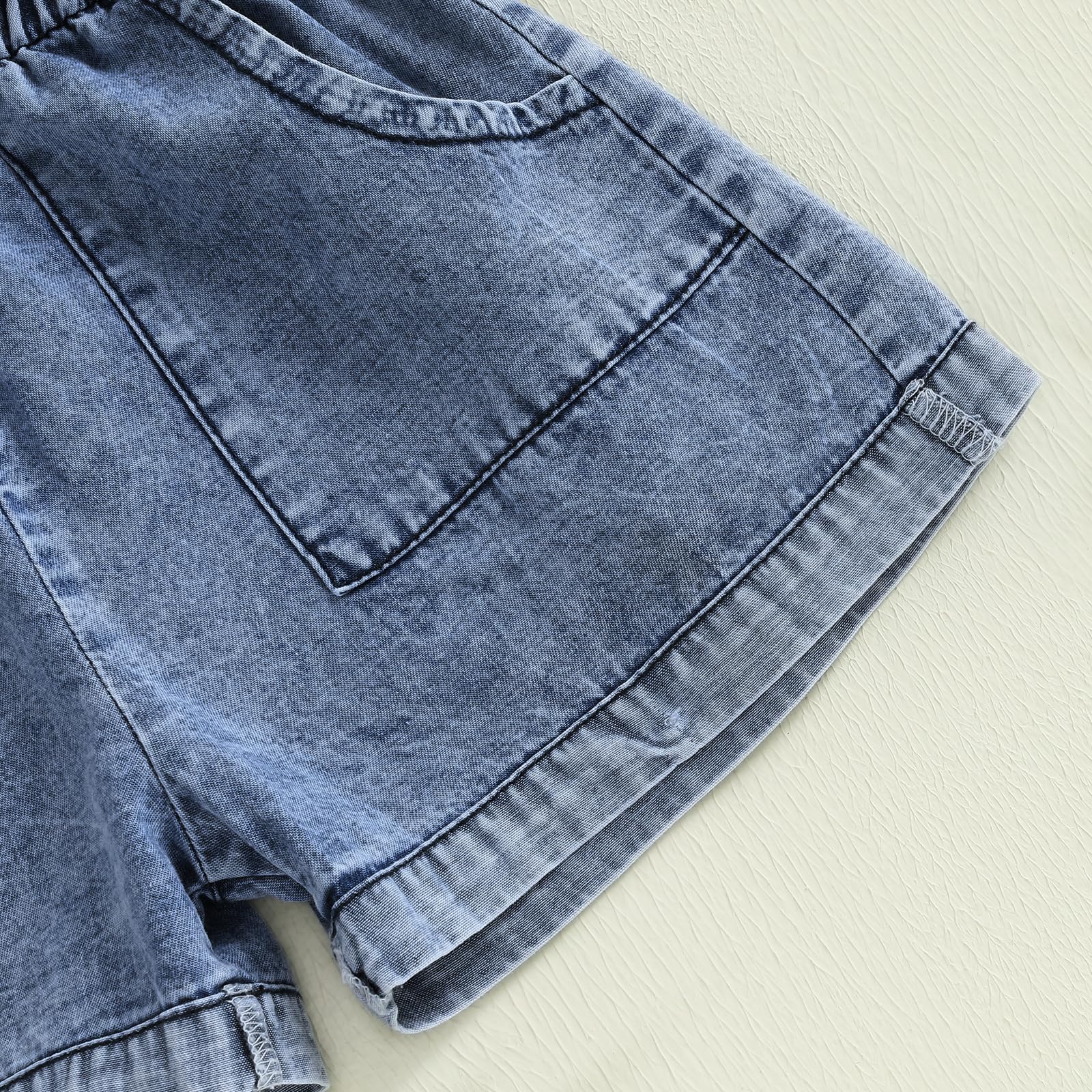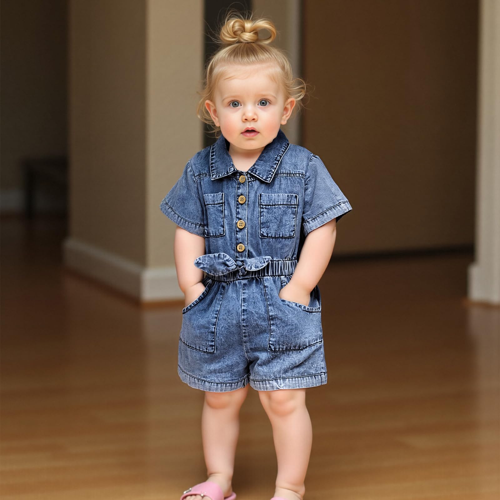About Size: Trendy toddler girl denim outfit, little girl summer short sleeve jumpsuit suitable for 12-18 months old, 18-24 months old, 2-3 years, 3-4 years and 4-5 years little baby kid girl's wardrobe