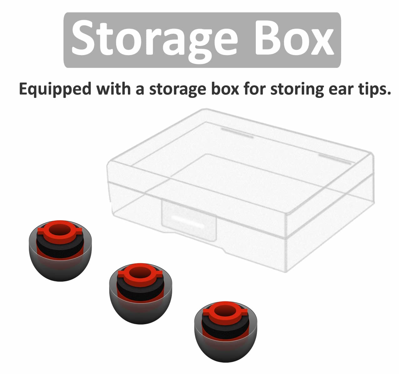 【 Storage Box 】 Equipped with a storage box for storing 3 pcs ear tips, ear tips only, earphone and charging case NOT included.