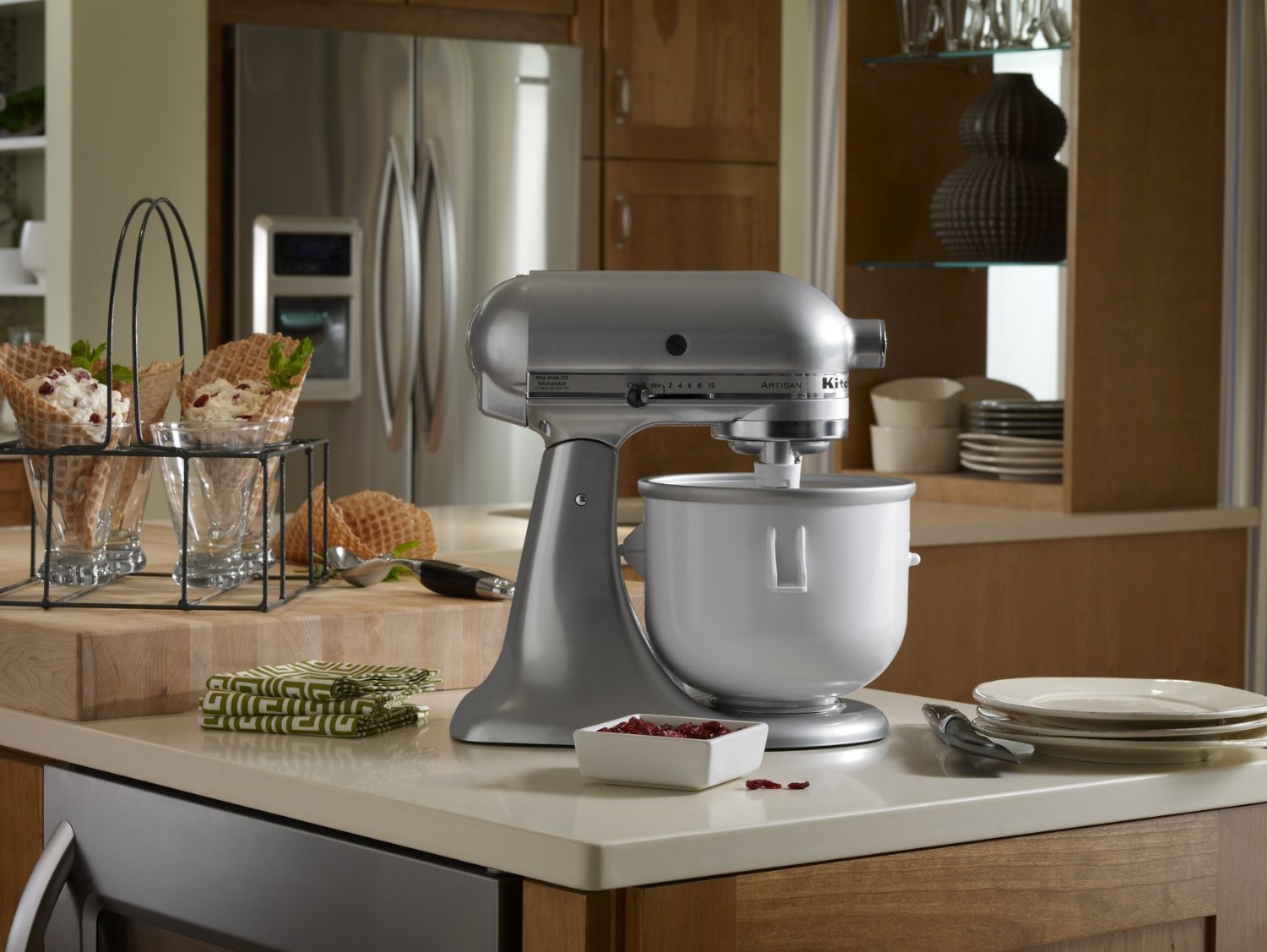Product Description Make up to 2 quarts of fresh ice cream, sorbet and a variety of other frozen desserts quickly and easily with theKitchenAid Ice Cream Maker. (Fits all Household Stand Mixers 4.5 Quart and larger.) For everything you want to make. Brand Story By KitchenAid
