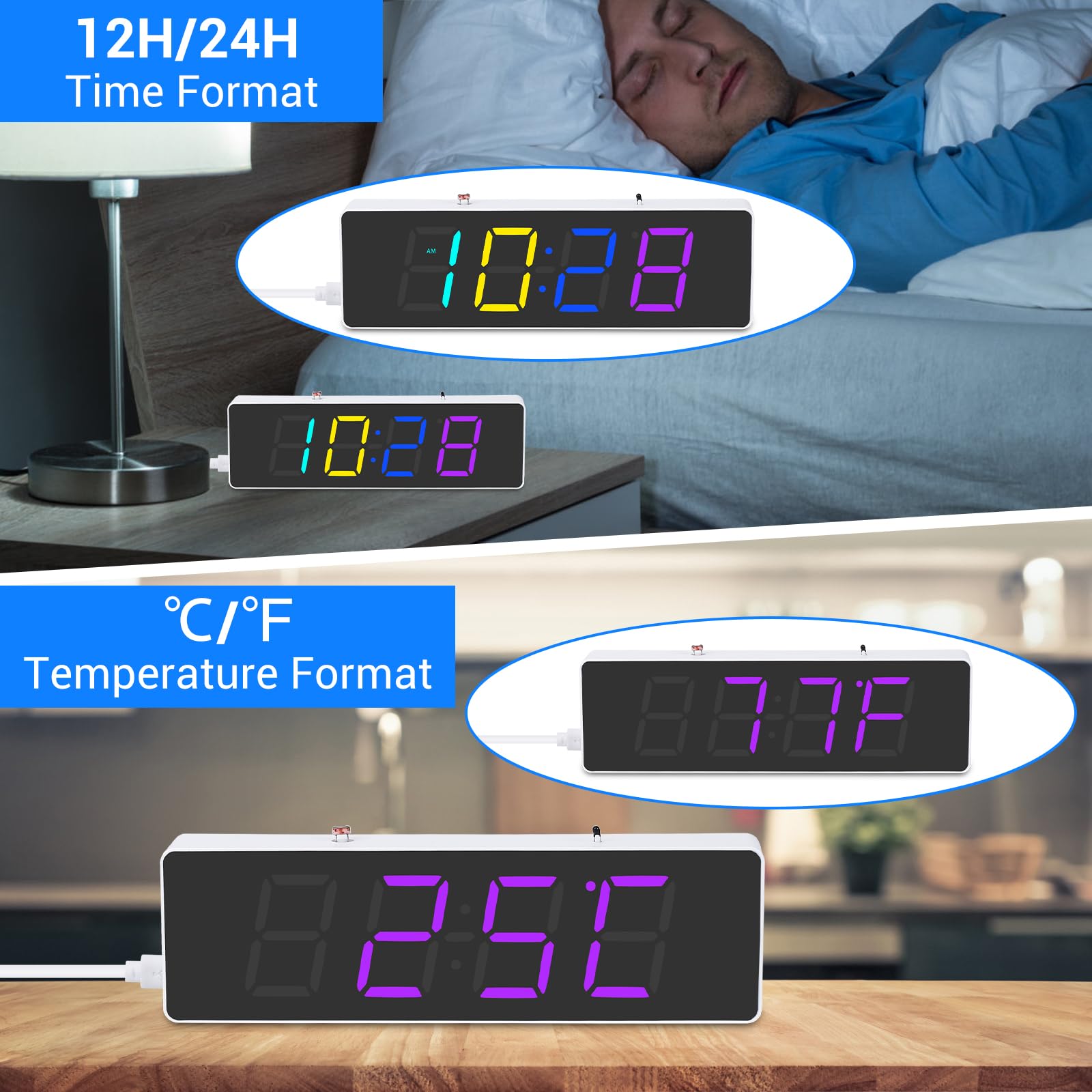 ⏰【Functions & Features】: The diy electronic clock can display Time, Date (year, month, day, week), Temperature. The brightness can be set to automatically adjust, or you can manually adjust the brightness. With power-off memory and alarm clock function, the alarm clock can be turned on or off by yourself and contains 4 music adjustable, never let you miss any important moment. The 4-digit digital electronic clock can also accurately measure temperature.