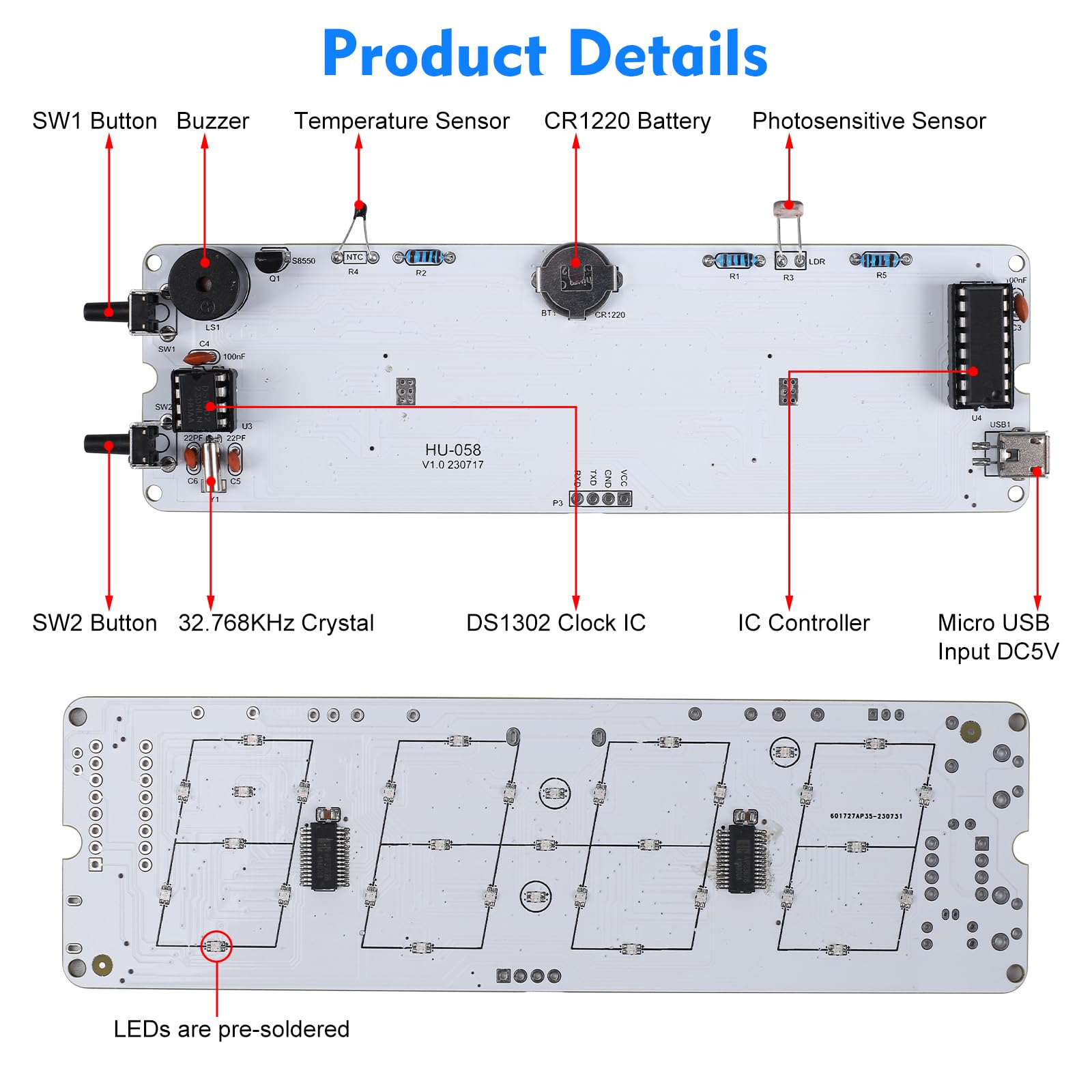 ⏰【Easy Assembly】: The LED board has been pre-soldered, you only need to solder a few electronic components. The connection that was clearly mapped and labeled on the PCB board, the led clock kit is easy to build and the principle is simple. A great first diy electronics kit for any STEM students, can be used as school education practice kits. But please note, this diy soldering kit requires certain foundation of basic electronic theoretical knowledge and soldering and hands-on ability.