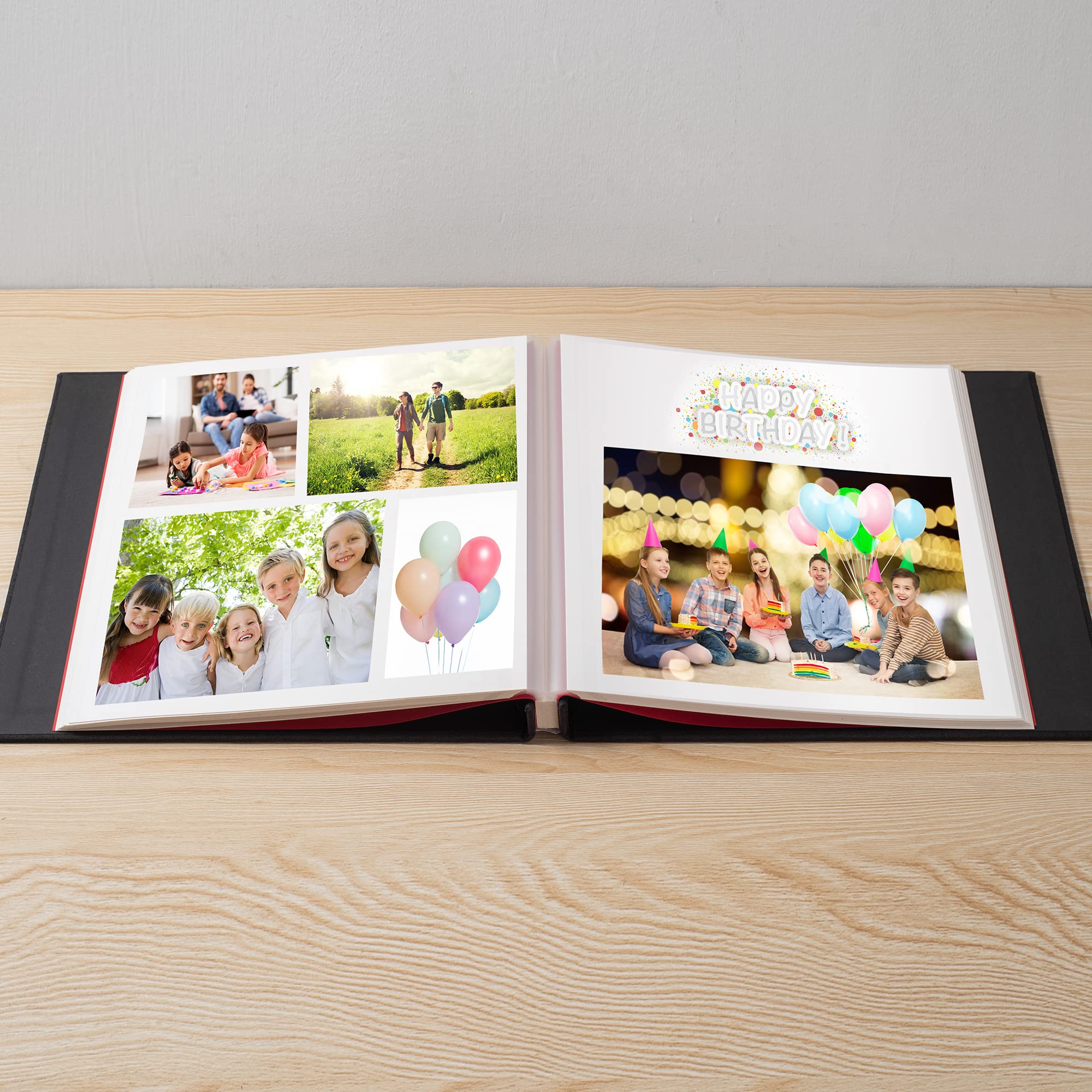 Album Size: The external size is length 13 x width 12.8(inches), internal self-adhesive page length 12.6x width 11(inches), 20sheets/40 pages, can hold 200 4x6, 40 8x10 or 40 10x12 photos