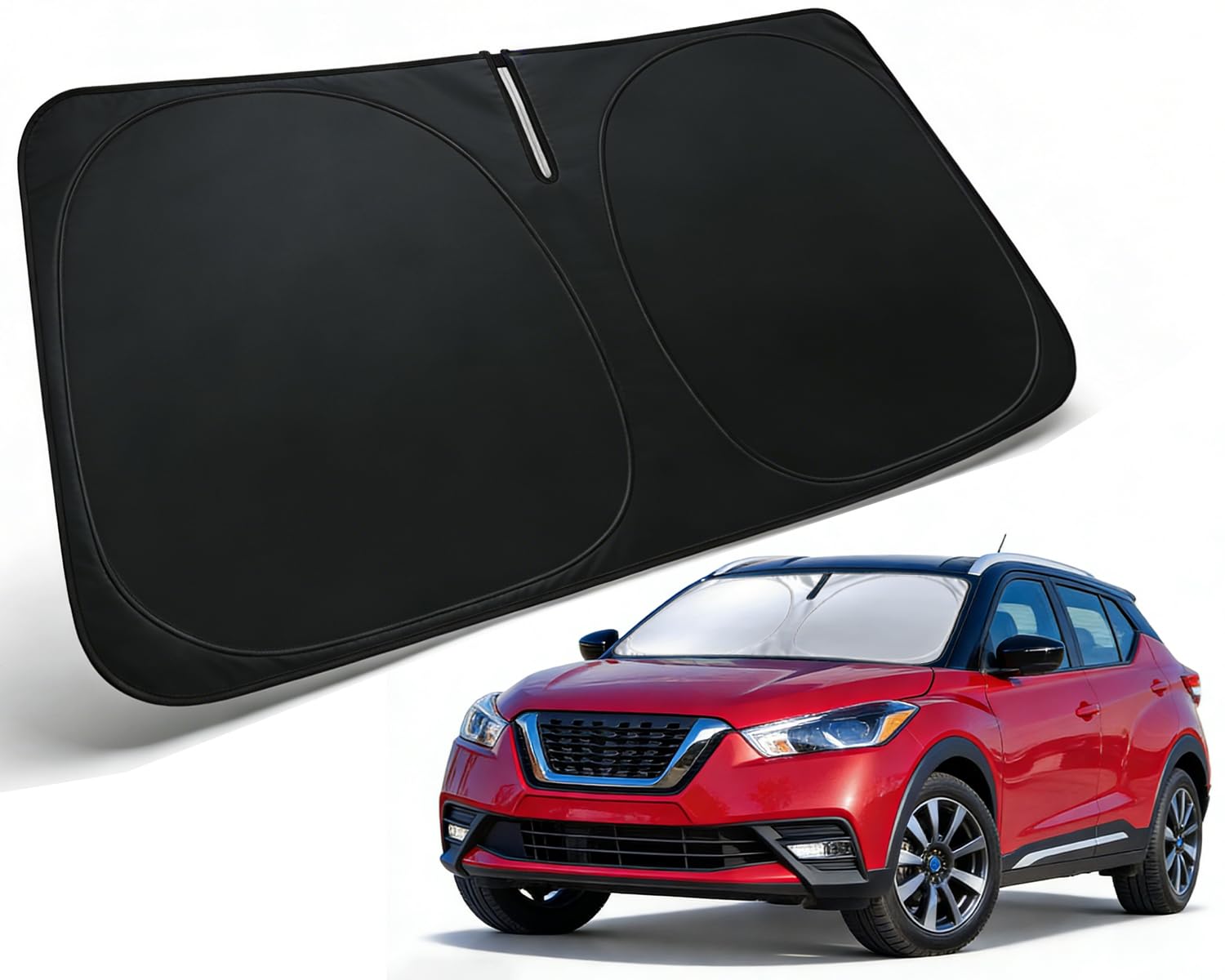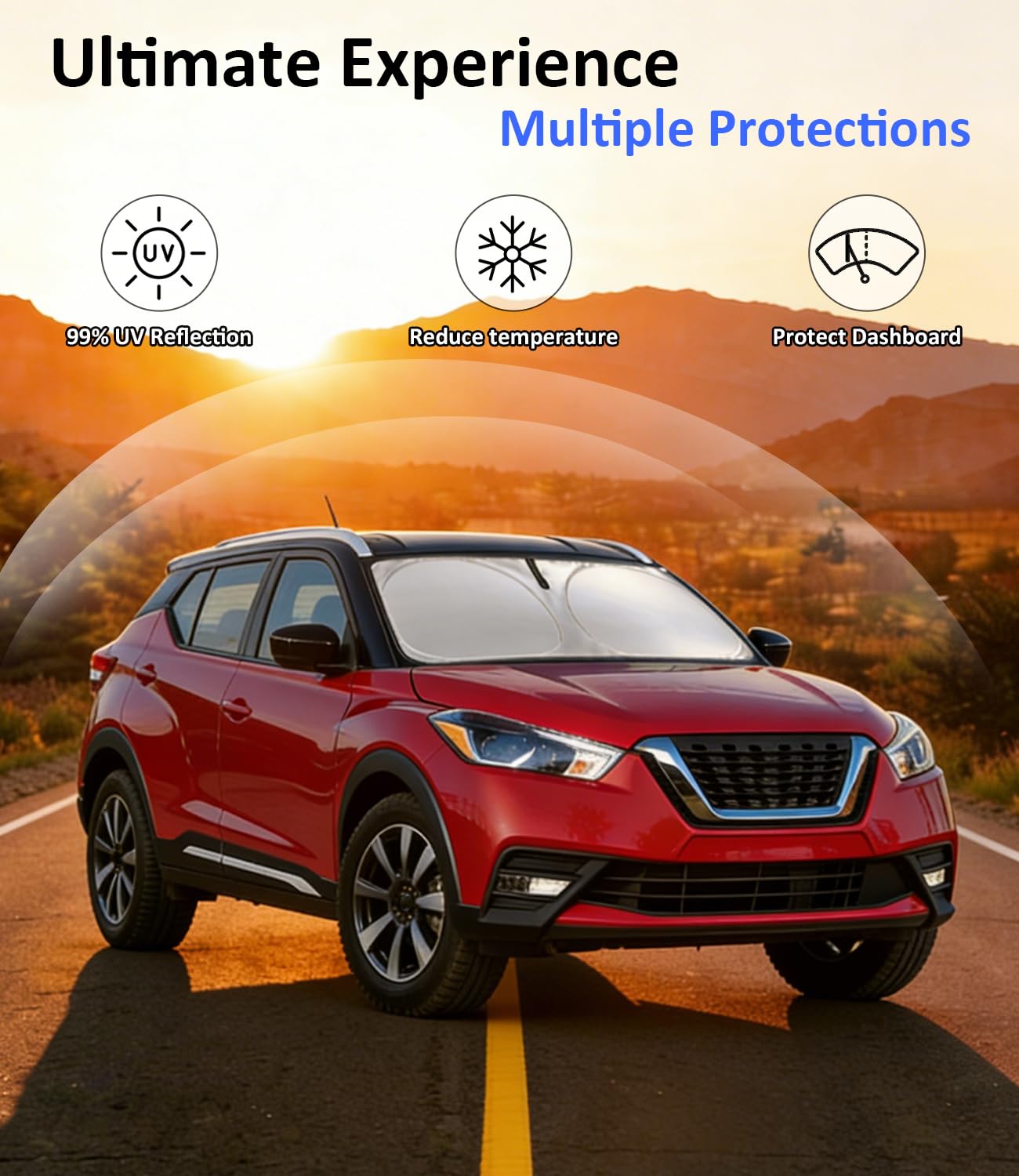 [Custom Precision Fit for Your Nissan Kicks] Engineered specifically for the Nissan Kicks (2018-2024 models), this sun shade installs effortlessly. It hugs your windshield perfectly with no suction cups needed, and resists sagging or collapsing—making it ideal for both daily use and outdoor camping.