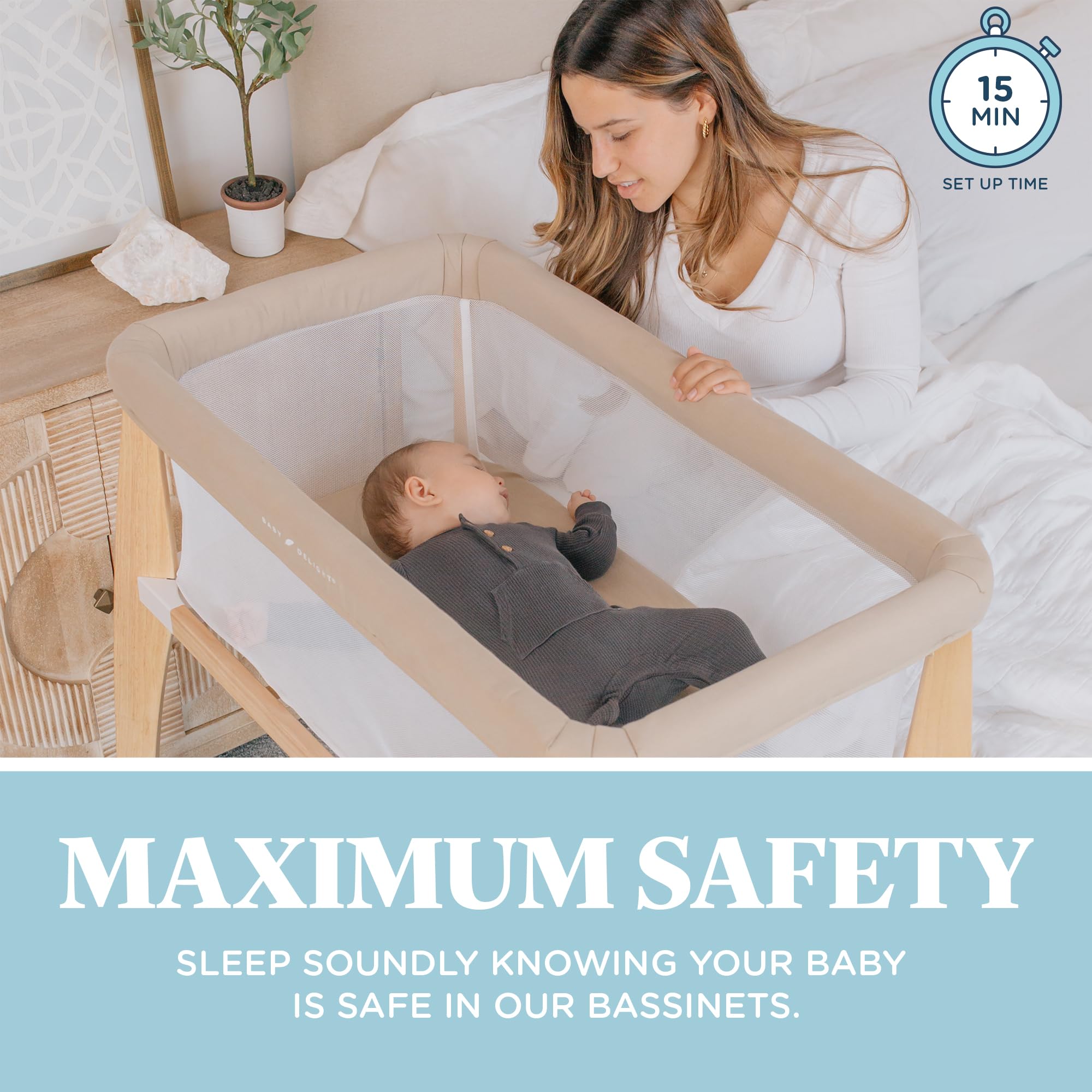 MAXIMUM SAFETY: At Baby Delight, we also believe in safe sleeping environments which is why this bedside sleeper has a sturdy frame, non-skid feet, is JPMA certified, and passes ASTM F2194 standards. Sleep soundly knowing your baby is safe in our bassinets.