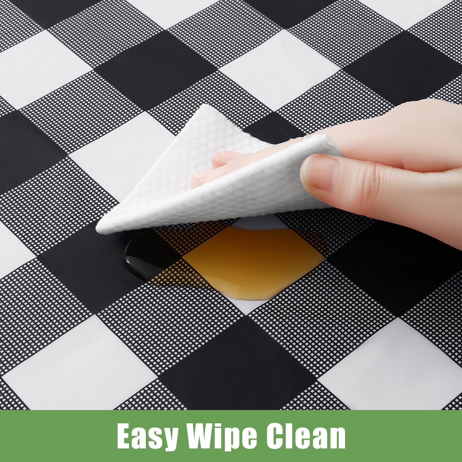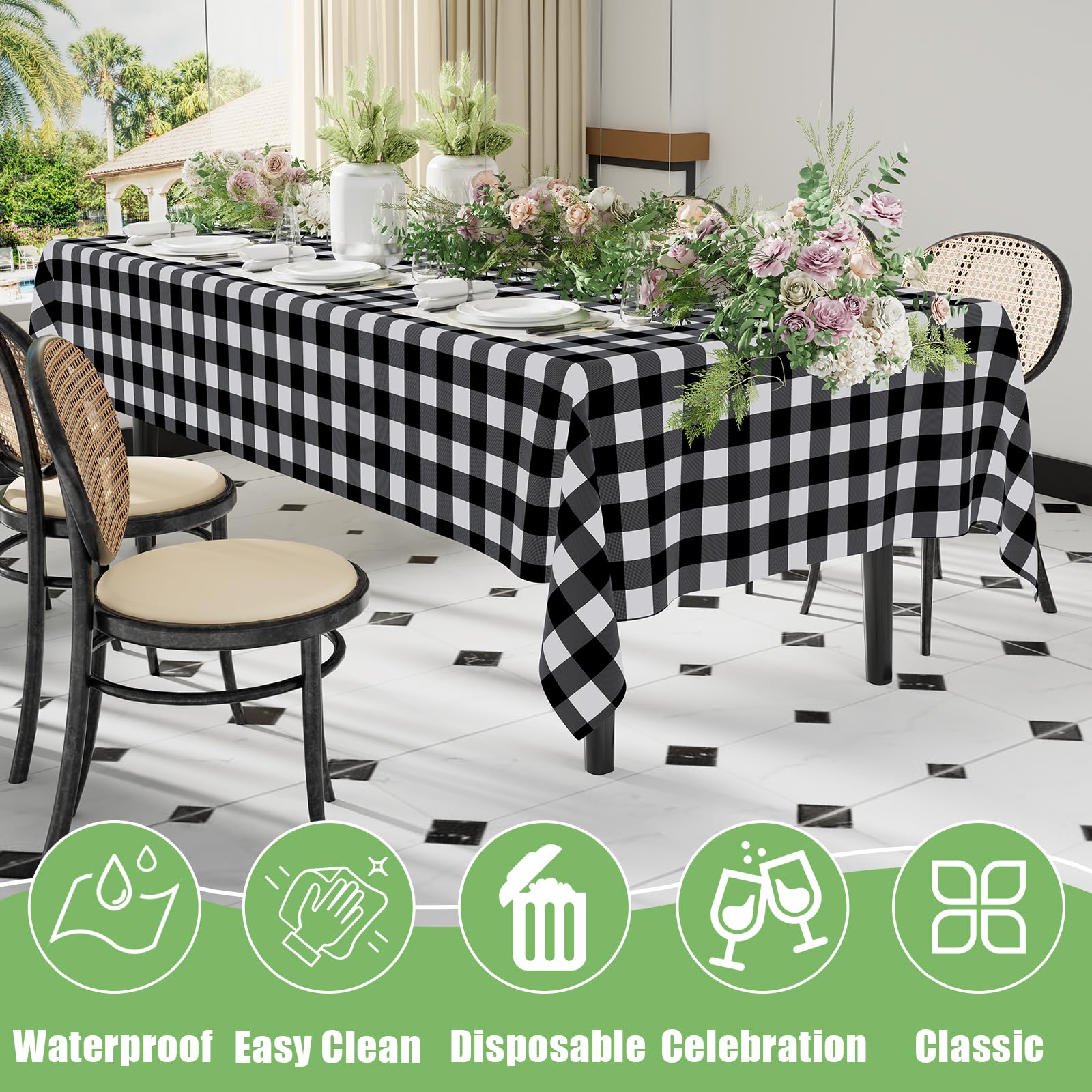 [Waterproof & Easy Clean] The surface of our plastic table cloth is waterproof, providing protection for your table from spills and stains. Simply wipe the tablecloth with a damp cloth to easily clean. After use, just dispose of it, and you're done!