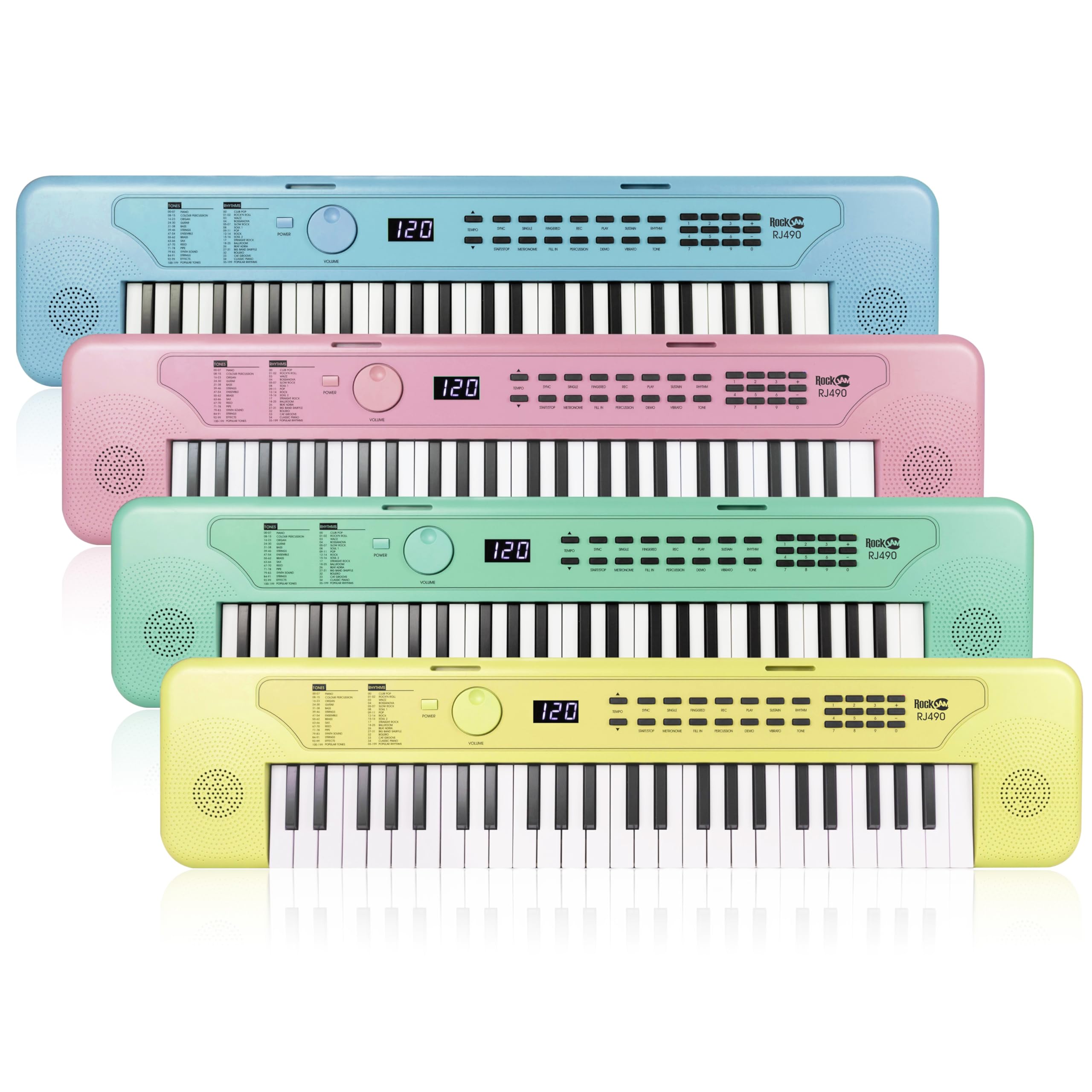 Introducing the RockJam 49 Key Keyboard Piano from the vibrant Macaron range - where compact size meets immense musical potential. This sleek and stylish keyboard is not just an instrument; it's an invitation to unleash your creativity and embark on a melodic journey like never before. Crafted to be the perfect introductory digital piano for beginners, this 49-key marvel is a harmonious blend of style, superb sound quality, and unparalleled functionality. Whether you're just starting out or looking to hone your skills, the RockJam electric piano is your ultimate companion. Prepare to be amazed by the sheer versatility packed into this electric piano. With an impressive array of 200 tones, 200 rhythms, and 50 demo tracks, the possibilities are endless. Plus, with its convenient record and playback function, you can capture every moment of your musical exploration with ease. Experience the power of sound like never before, courtesy of the built-in stereo speakers delivering a robust 10 Watts of audio. And for those moments when you prefer solitude, simply plug in your headphones and immerse yourself in your own private concert without disturbing others. But the features don't stop there. This digital piano boasts additional inputs and outputs designed to elevate your playing experience. Utilize the Aux input to jam along with your favorite tunes or connect a microphone via the 3.5mm input for vocal accompaniment. As a special bonus, we've included piano note stickers to help accelerate your learning process. But that's not all - unlock exclusive content from Simply Piano, a cutting-edge IOS and Android application designed to teach you everything from your favorite songs to fundamental piano techniques. With the RockJam 49 Key musical keyboard, the world of music is at your fingertips. Elevate your playing, ignite your passion, and let your creativity soar like never before. Experience the magic today.