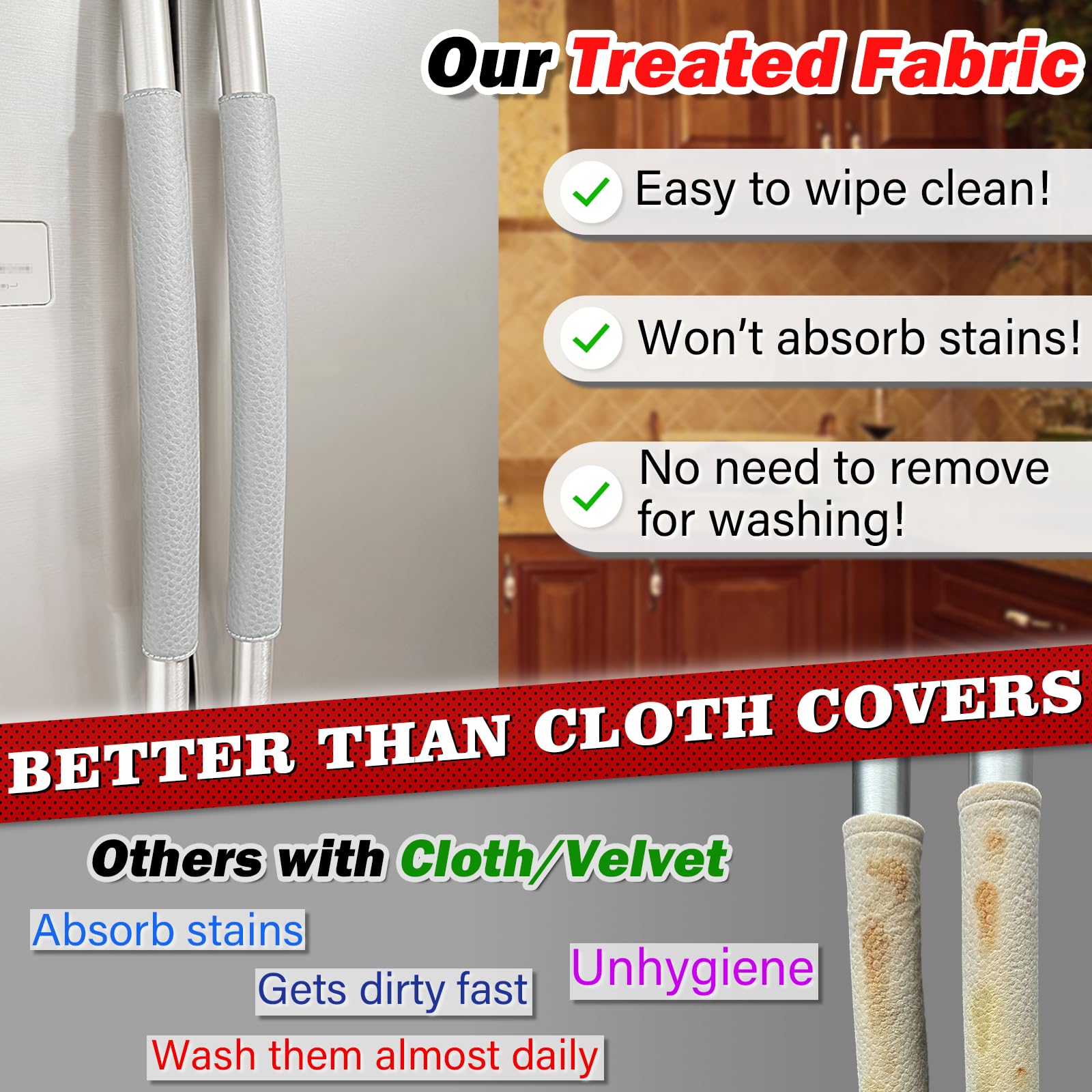 【BETTER THAN CLOTH COVERS】 - Rikzor fridge handle covers are made of treated fabric which doesn’t collect water, dirt, or stains. It can be easily wiped clean, which means you don't need to remove and wash it almost daily like velvet or cloth handle cover.