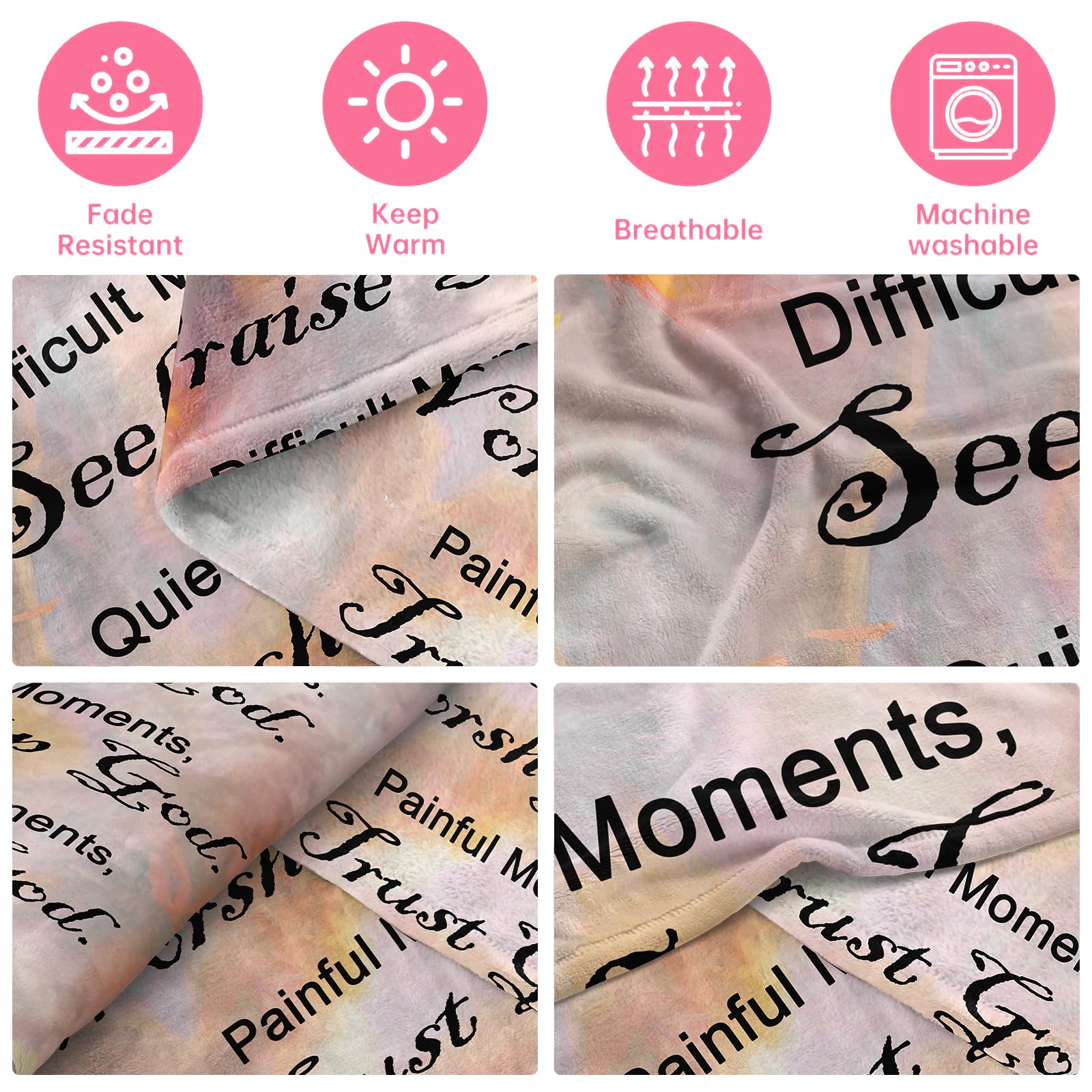 Christian Blanket: The soft throw blanket uses healthy and environmentally friendly printing and dyeing technology, which does not fade and does not pilling. This is a very delicate fleece blanket, the fabric of mom blanket is soft.