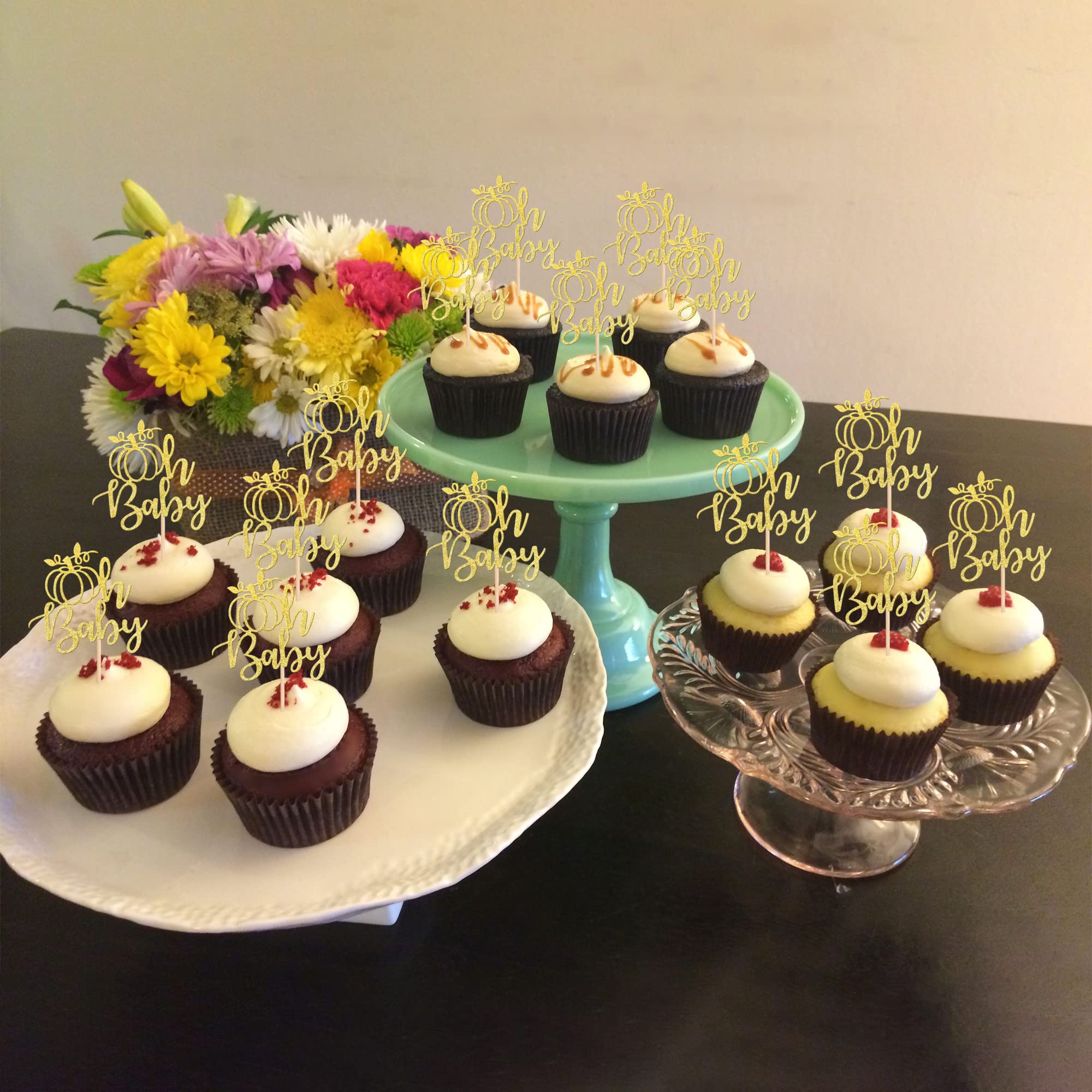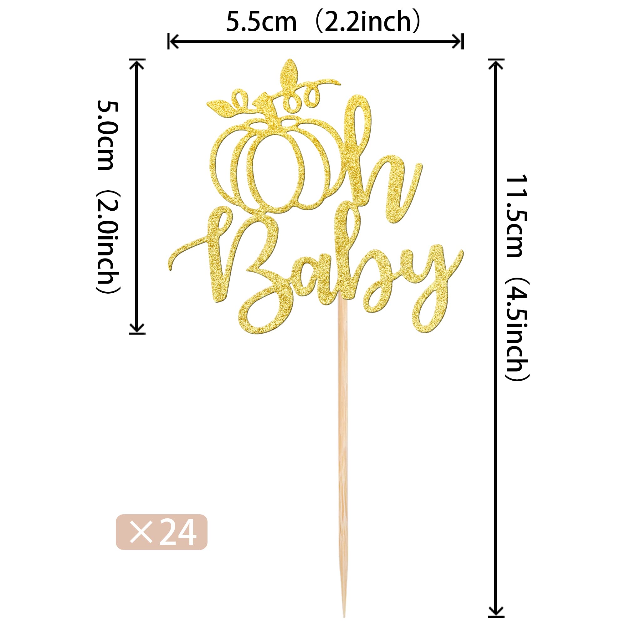 Pumpkin Oh Baby Fall Theme Gender Reveal Baby Shower Kids Boys Girls Birthday Party Cupcake Decorations Supplies Perfect for oh baby theme party,fall theme party, pumpkin theme party,baby shower theme party ,gender reveal theme party,kids birthday theme party cupcake decorations supplies. Pack of 24 pcs. The size is 2.2 *4.8 inch ( with stick ) Made of high quality paper card stock and food grade sticks,thick and sturdy. These cupcake toppers are single glitter, the back is white, and they are intended for decoration only, please do not put them in oven or microwave. If the item you received has any defects, please contact us for refund.we will deal with it within 24 hours.
