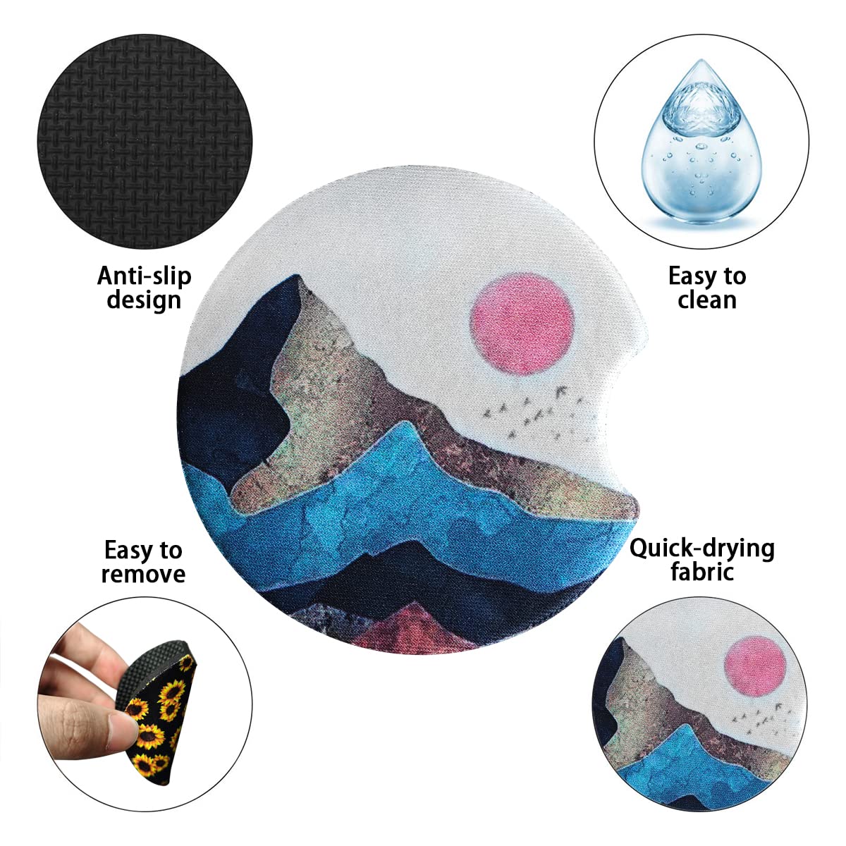 Easy to Clean: The unique finger allow you to lift car coasters out with ease when it's time to clean. Easy to clean with soap and water, the car cupholder coasters will look spic and span in just a matter of minutes. You don't need to worry about them fading.