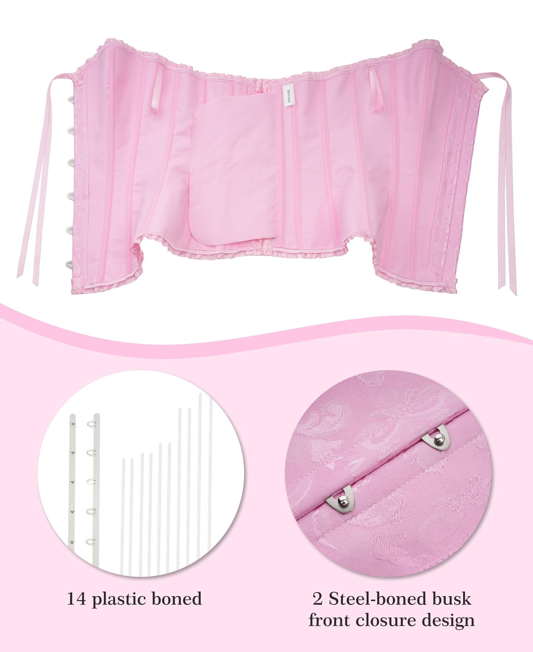 PREMIUM CRAFTSMANSHIP: Our women's bustiers & corsets are crafted with an unwavering commitment to quality. The outer shell of corset shapewear is a blend of luxurious Polyester, complemented by a pure Polyester lining that promises longevity and resilience. The stainless steel busk closure stands as a bastion of reliability, ensuring your corset black crop top remains securely fashioned, no matter the occasion.