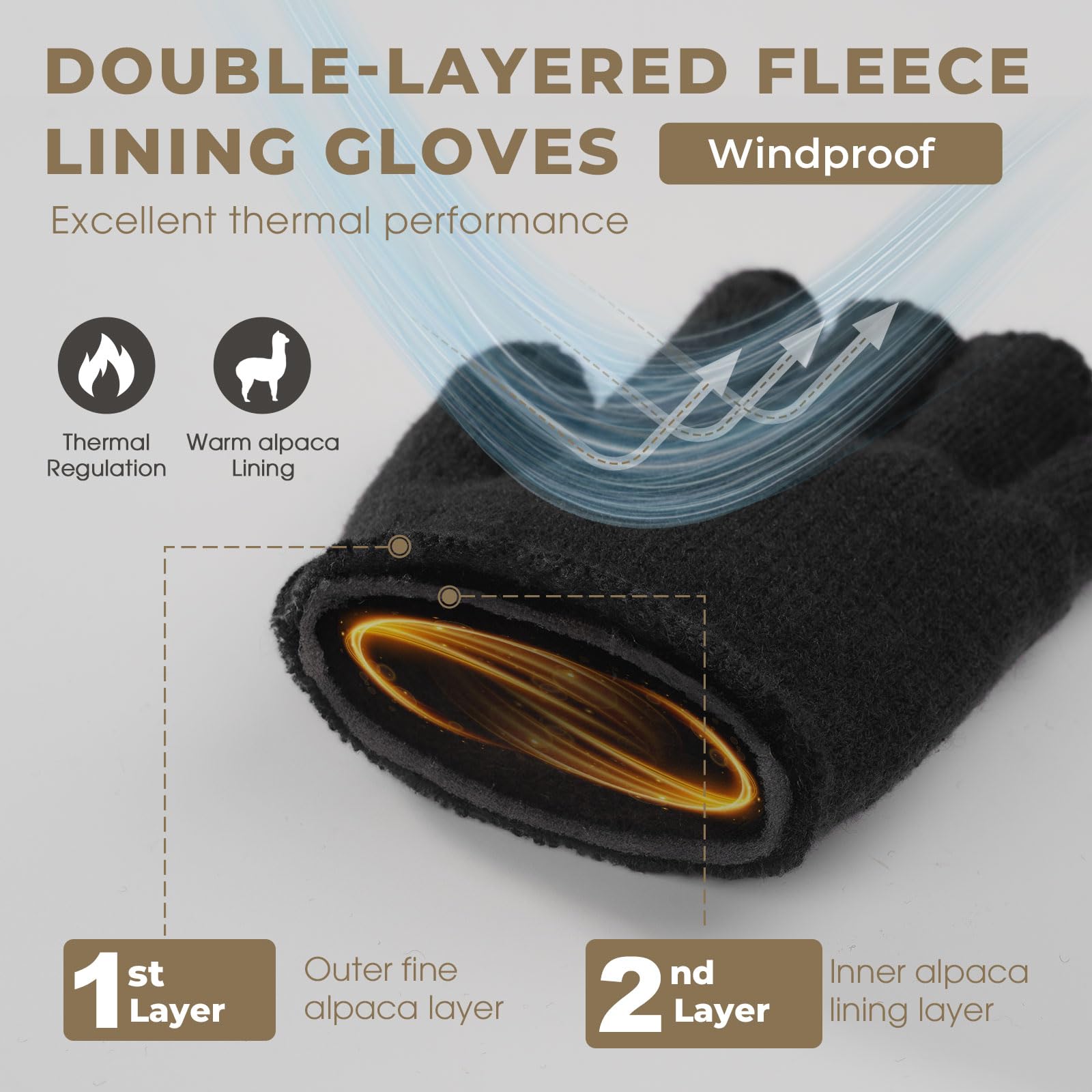 Ultra-Soft & Breathable Alpaca Wool with Fleece Lining:Made from premium alpaca wool with a cozy fleece lined interior, these fingerless gloves are exceptionally soft and skin-friendly, ensuring warmth without irritation. Ideal for everyday use in cold weather, whether you're working indoors or enjoying outdoor activities like hiking.