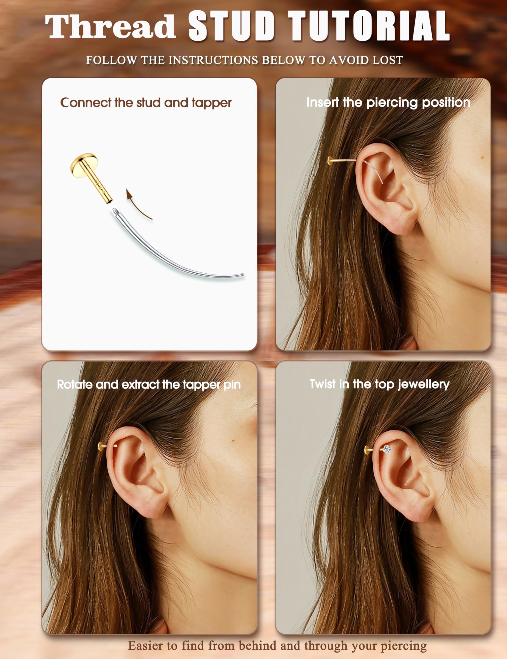 Internal Thread Upgraded Design: No more twisting anything behind your ears.You can wear they quickly and earrings studs stay firmly not easy to fall off.Compared with the butterfly buckle backs,These backs offer comfort fit for the side sleepers.Whether you choose to wear them as cartilage earrings or any other style, these studs provide both convenience and comfort.even when sleeping,sporting or showering