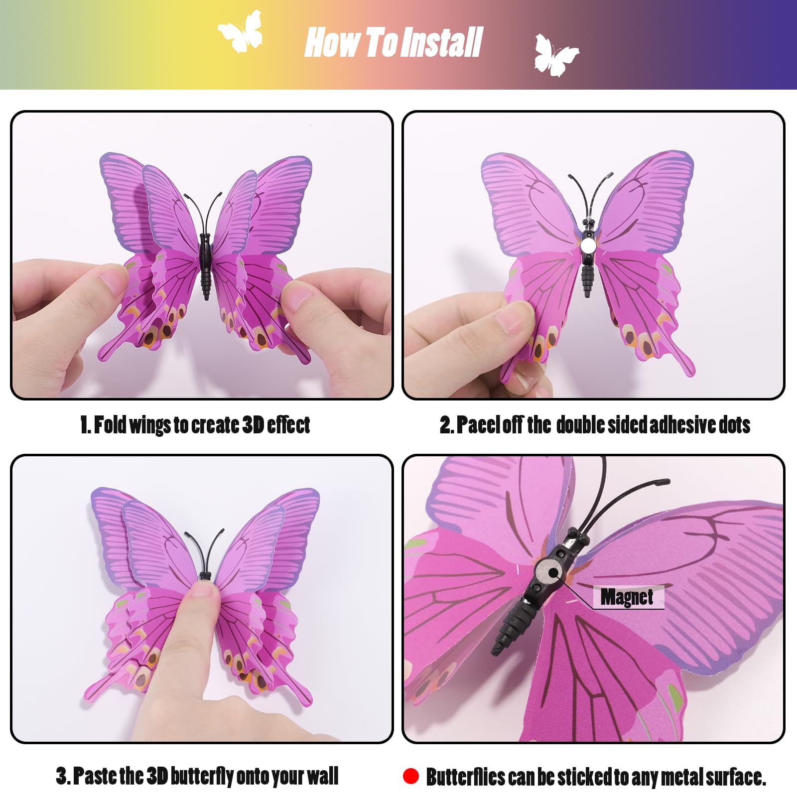 【Package Included】A set of 48 Pcs butterfly of 12 styles. 8 Pcs-4.7 inches, 8 Pcs-3.9 inches, 16 Pcs-3.1 inches , 16 Pcs-2.3 inches. Coming with 60 Pcs adhesive dots, extra glue points for replace.