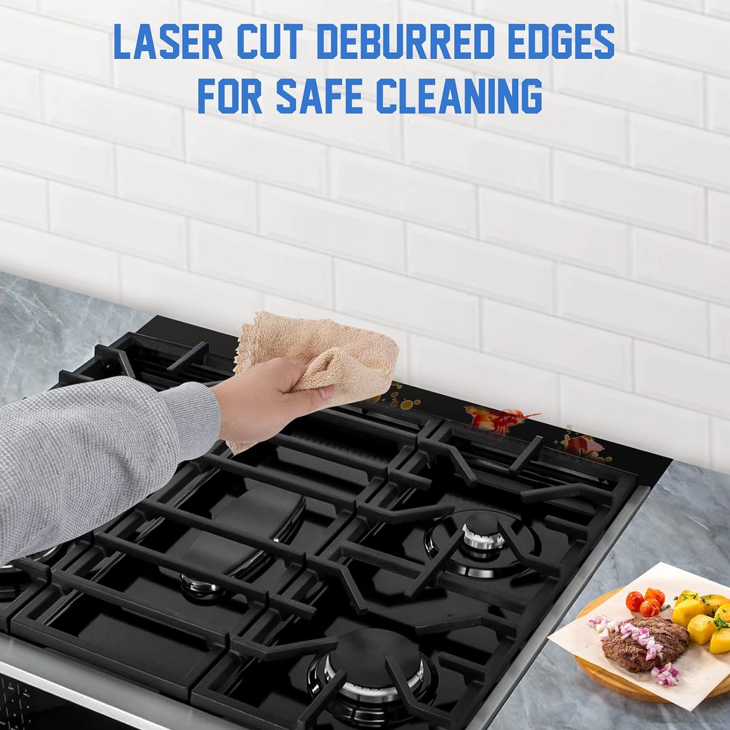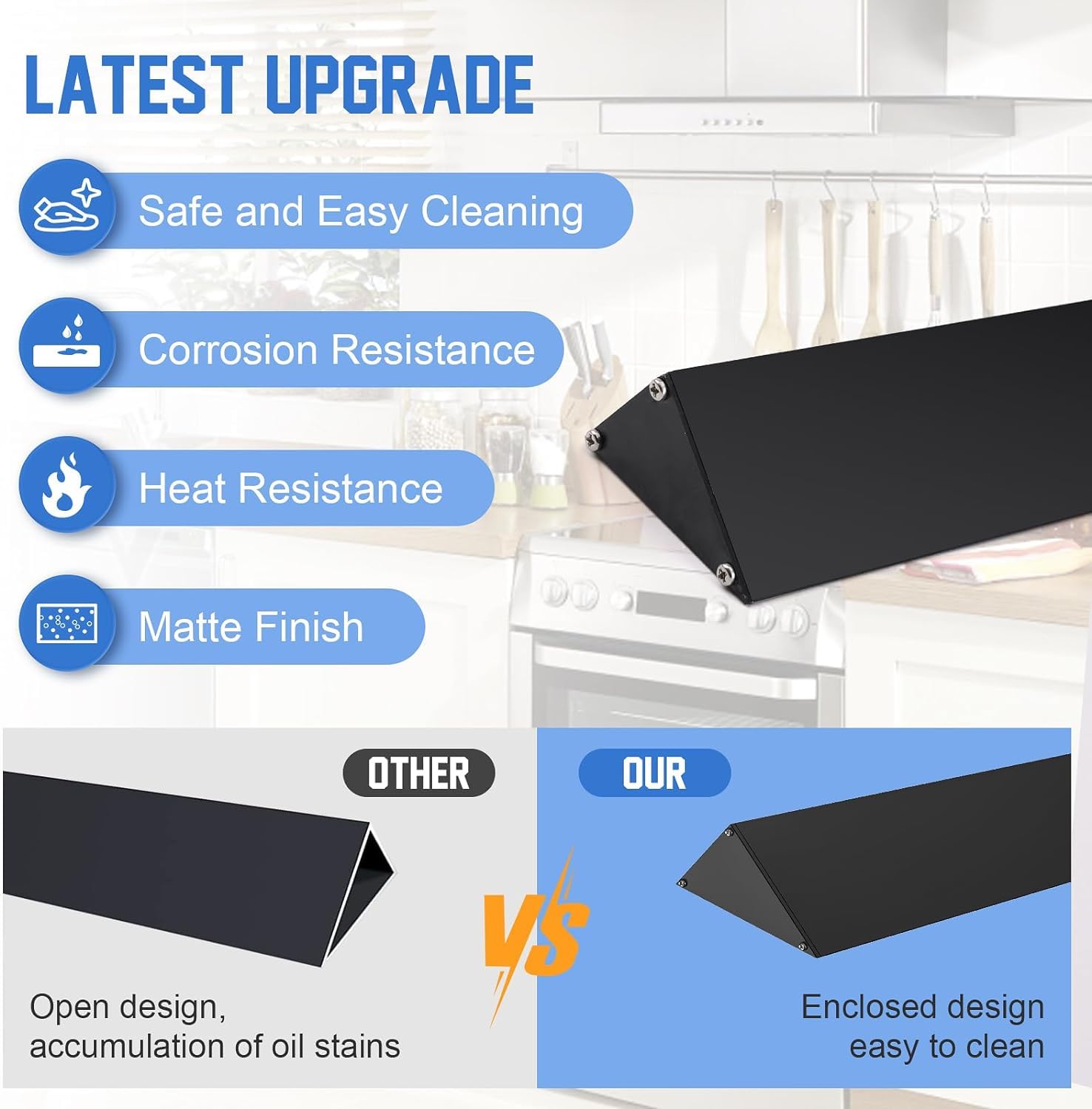 Premium Quality: The stove side gap covers for stove and counter is made of premium quality and aluminum material with surface oxidation treatment, beautiful and waterproof, heat and corrosion resistant. The fully enclosed design of stove gap covers for back wall is easier to clean, making the kitchen neater and more comfortable to cook