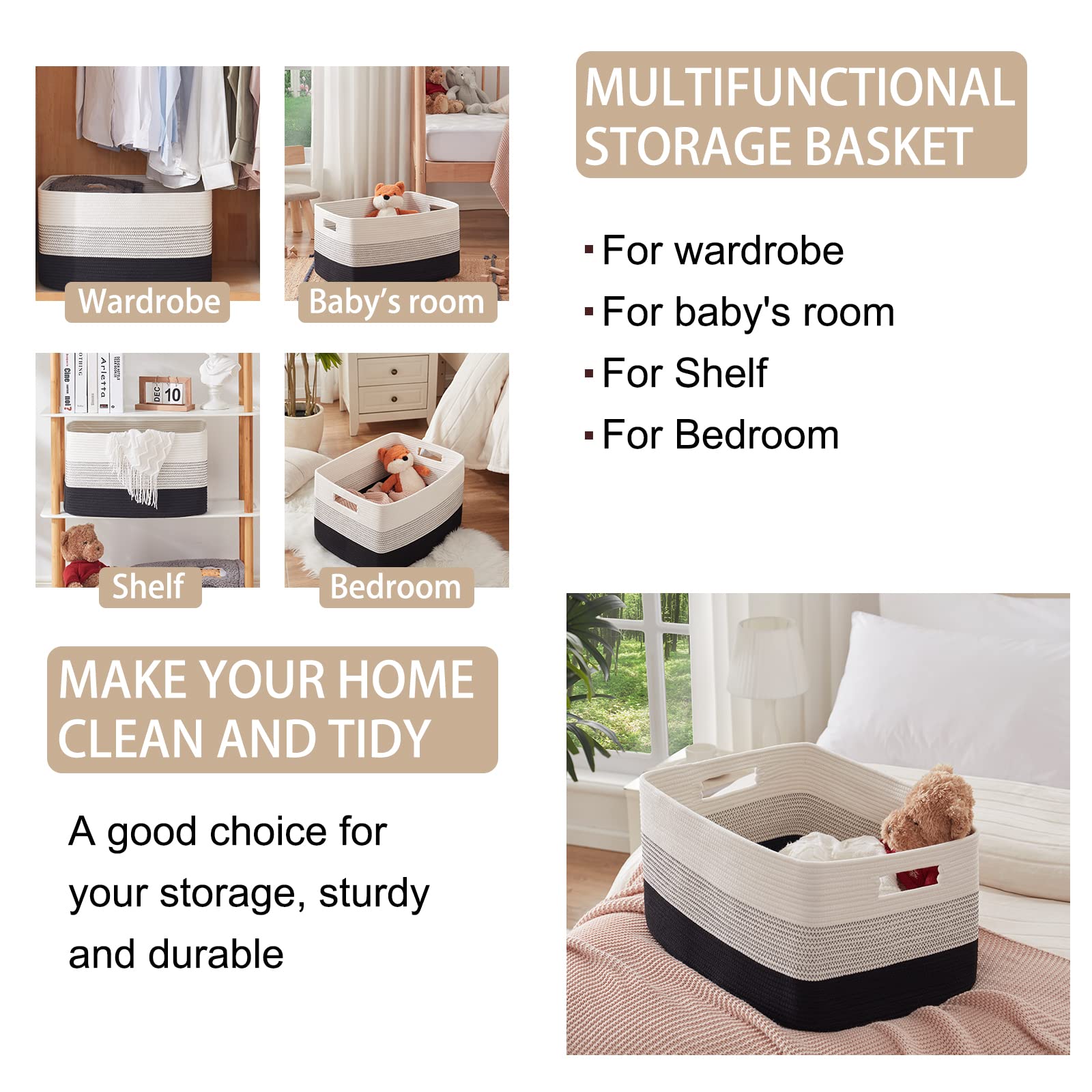 Decorative Blanket Storage for Living Room:This rectangular blanket basket is more stable and easier to restore its sahpe after you receive the package. The 22’’ x 17’’ x 12’’ large storage basket can also used to store blankets, pillows, cushions, toys, clothes and towels