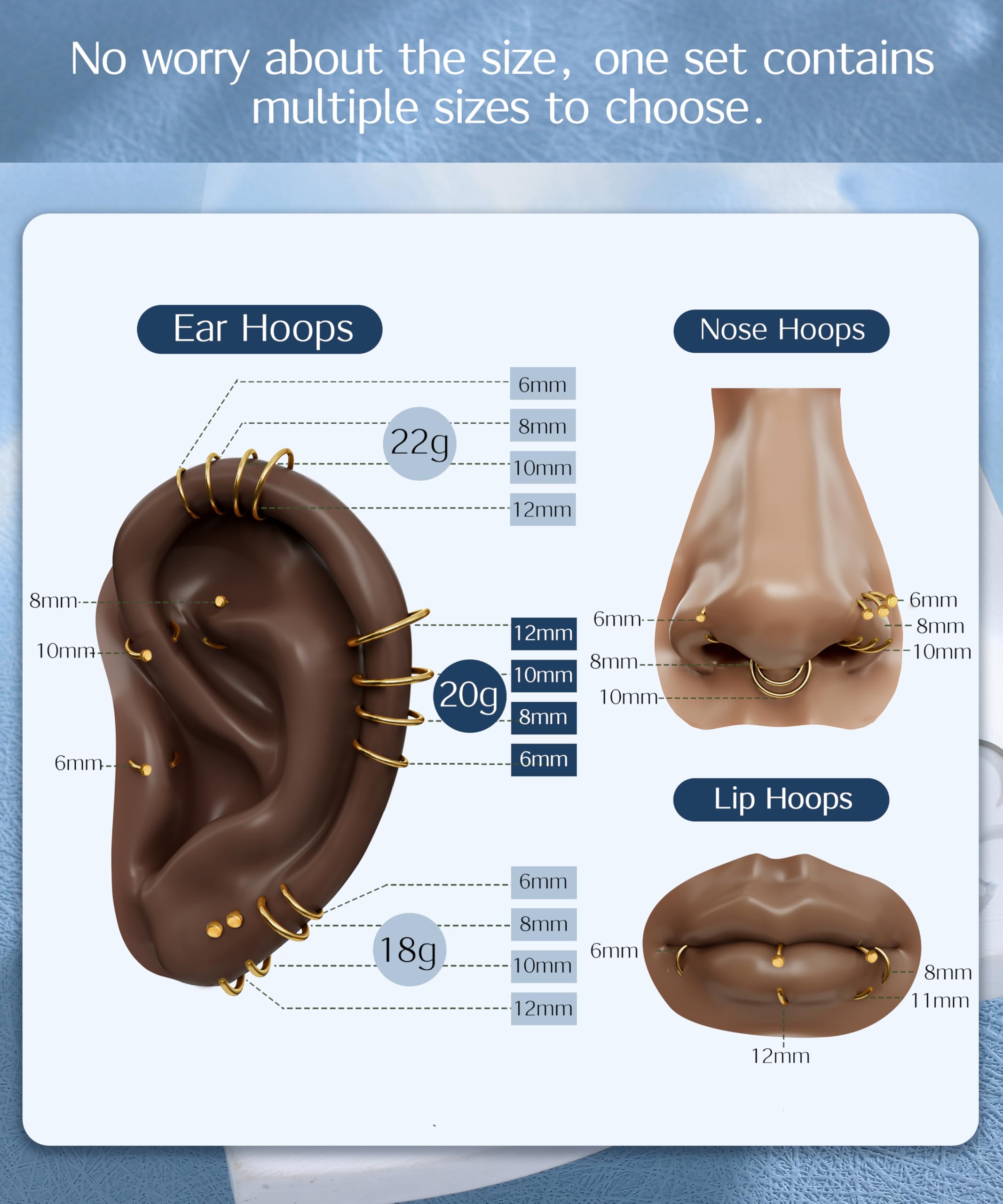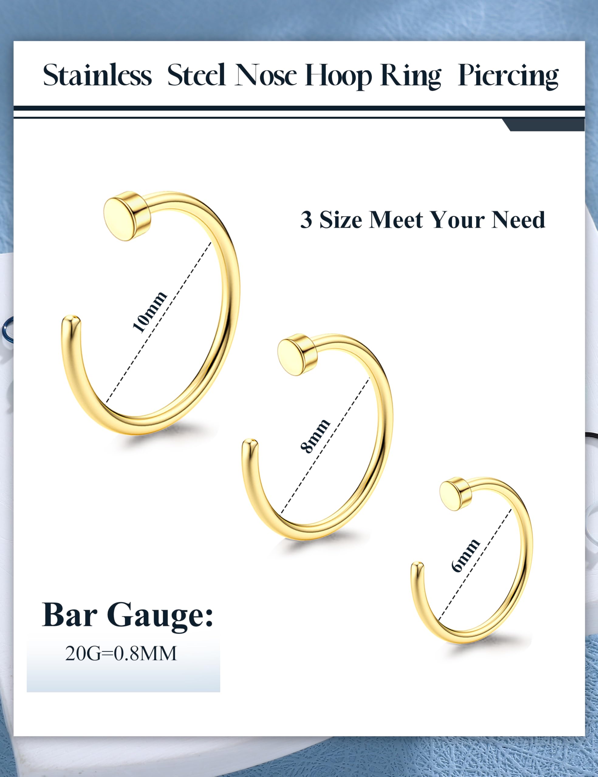 MATERIAL: Nose hoop earrings are made of 316L stainless steel, sturdy and durable, highly polished, smooth surface, long-lasting color, safe and comfortable for sensitive skin to wear