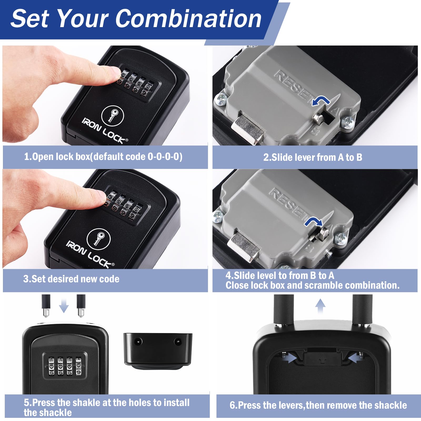 🔑Removable Shackle is easy to install over a doorknob, fence, locker, gate, garage or anywhere you need to install a lock box, and it can be placed anywhere. Easily transportable from one location to another. A Removable Shackle makes it easy to place on doorknobs, a wide fence or anything that is oversized. Cover should be up to keep it the combination from getting jammed or stuck.