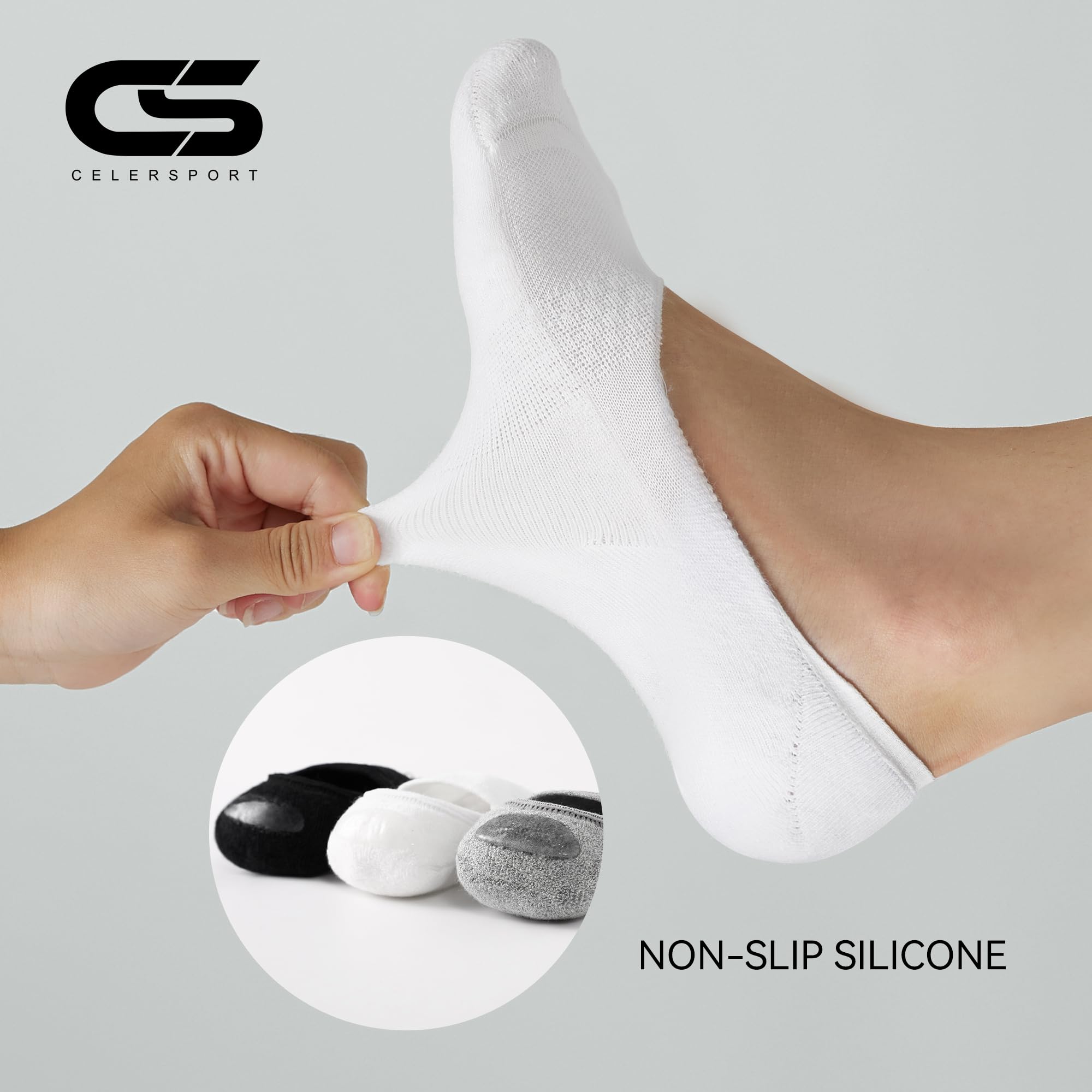 Anti-Slip Silicone Heel: Each sock is equipped with anti-slip silicone heel grips to prevent slipping and bunching, ensuring they stay securely in place no matter the activity