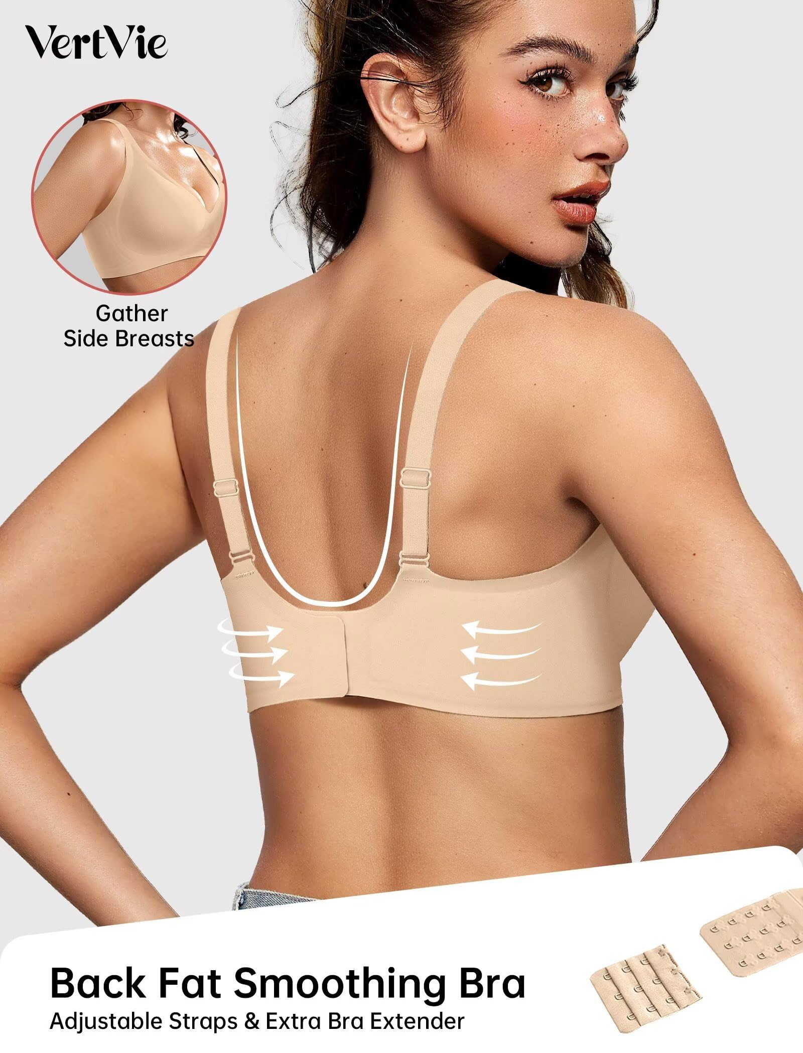【Sexy Deep V Neck Bras】Discover the allure of our stylish plunge bra! Designed to enhance your natural shape, this full coverage bralette features a plunging neckline that offers a sexy, elegant look and enhances your natural cleavage. Its design makes it perfect for pairing with low-cut tops and dresses, adding a touch of sophistication to your outfit. The VertVie wireless comfort bra will be your new favorite style with its smooth, invisible look.