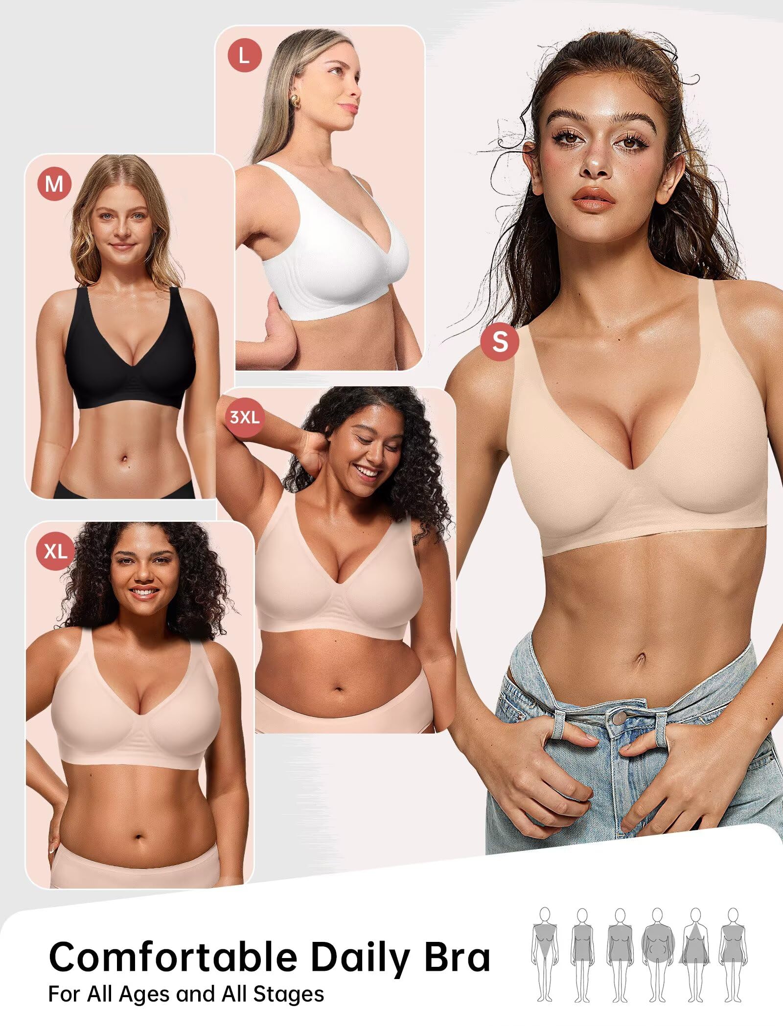 【Versatile Comfy Everyday Bras】Our bras for women no underwire achieve a balance between support, comfort, and style! These women's bralettes are incredibly versatile, perfect for everyday wear, yoga, sleeping, under t-shirts, or casual sports. They are your go-to choice whether you're lounging at home, heading to work, running errands, or dressing up for a special event. Discover our wireless bras—your fall fashion must-haves.