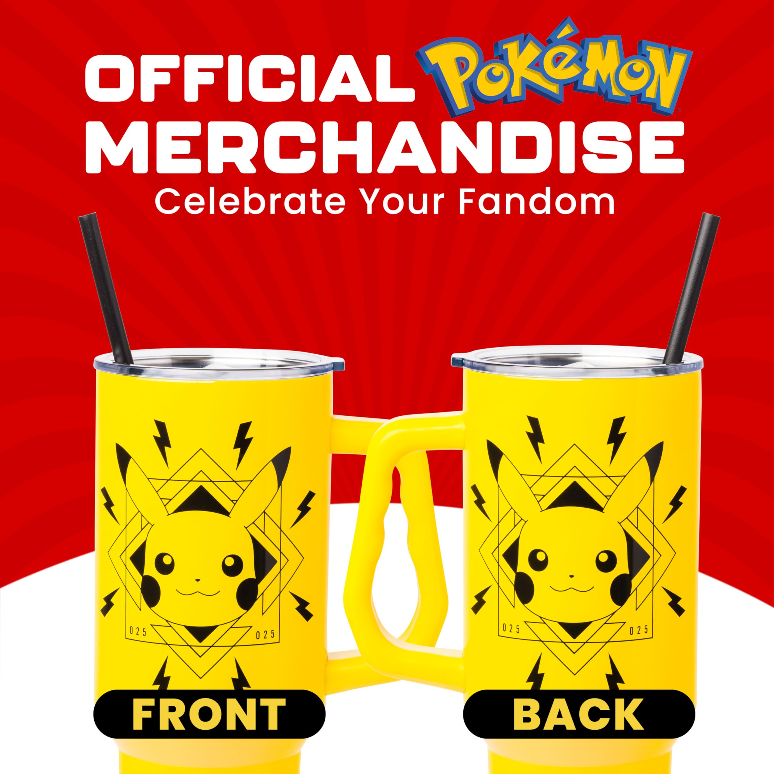 Catch them all with this themed tumbler! Stainless steel tumbler features Pikachu inside of a square design. Surrounding the character are lightning bolts. Design is featured on both sides of the yellow tumbler. This stainless steel tumbler is NOT microwave or dishwasher safe; HAND WASH ONLY. This stainless steel tumbler holds up to 40 ounces of your favorite beverage and is designed with a convenient handle making this tumbler easy to carry wherever you go. Whether you're gaming, hunting, or training, this tumbler is ideal for all your hydration needs. Pokémon fans will enjoy this awesome tumbler, making it the perfect gift. Great for birthdays, holidays, or other gift exchanges. Take a dive into the fictional world with Silver Buffalo! Silver Buffalo provides fans with official merchandise from their favorite characters. Working alongside licensors and brands, we create unique and imaginative products which are designed with great care and detail. Silver Buffalo aims to connect fans to their favorite cartoon characters, superheroes, movies, tv-series, and more. Celebrate your fandom!