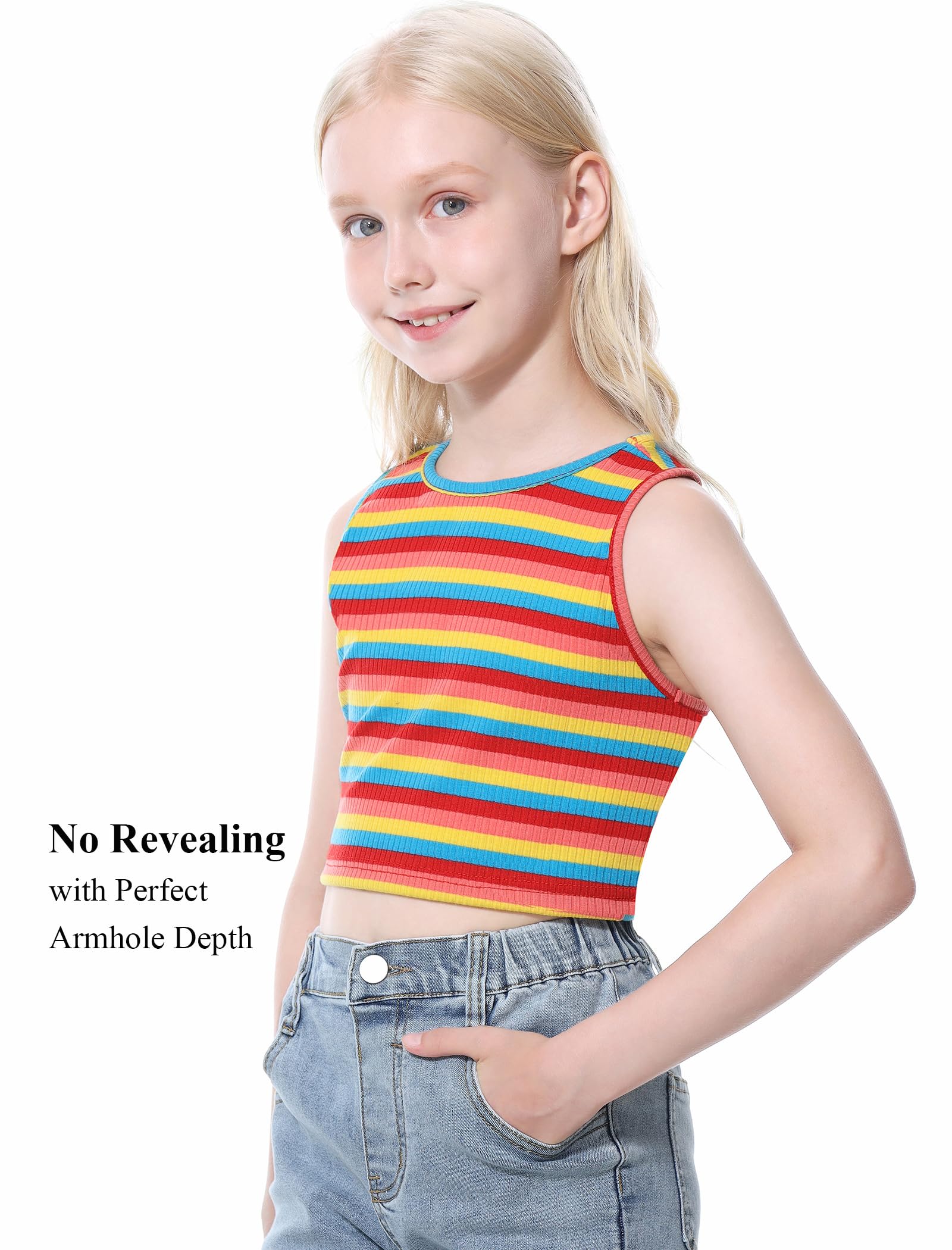 The cropped length sits at her waist, and the armhole cut is perfect without revealing.